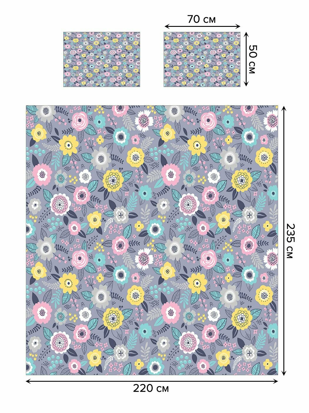 Модель: Покрывало на 2-спальную кровать Круглогодичные цветы 235х220 и две наволочки 70x50