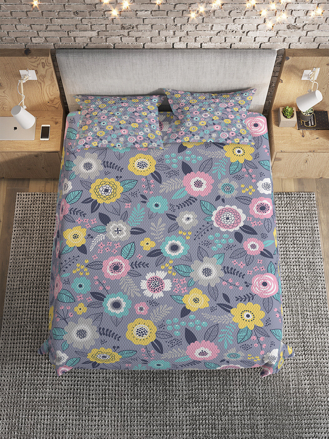 Покрывало Ambesonne 220х235 см с 2 наволочками 50x70 см Покрывало на 2-спальную кровать Круглогодичные цветы 235х220 и две наволочки 70x50 (размер: евростандарт)