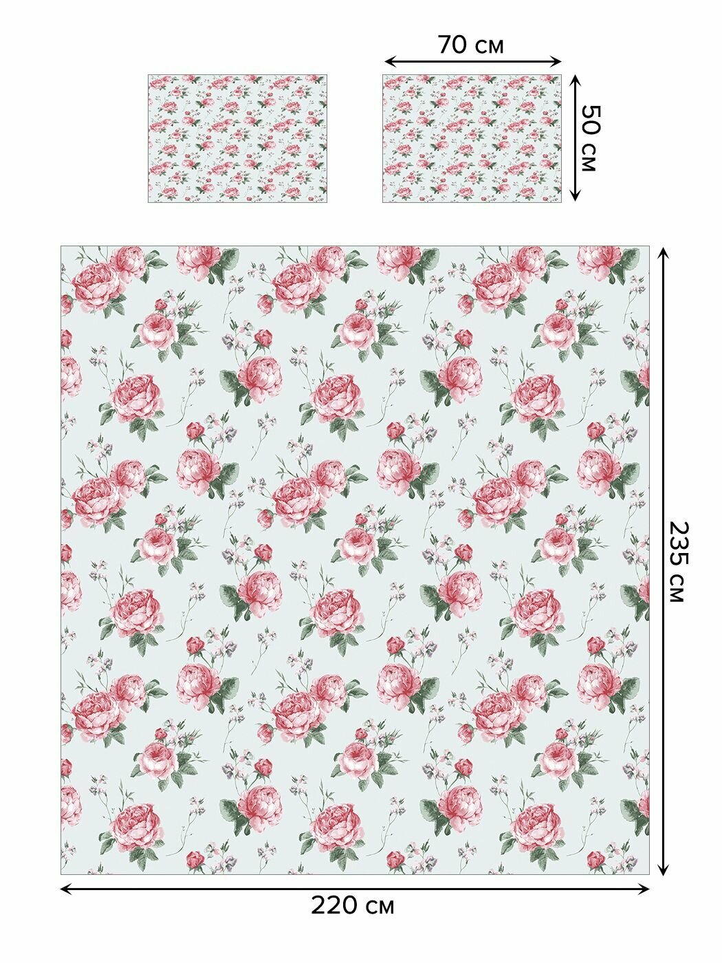 покрывало 235 х 220 см (2х - спальное), наволочки 70 x 50 см – 2 шт.