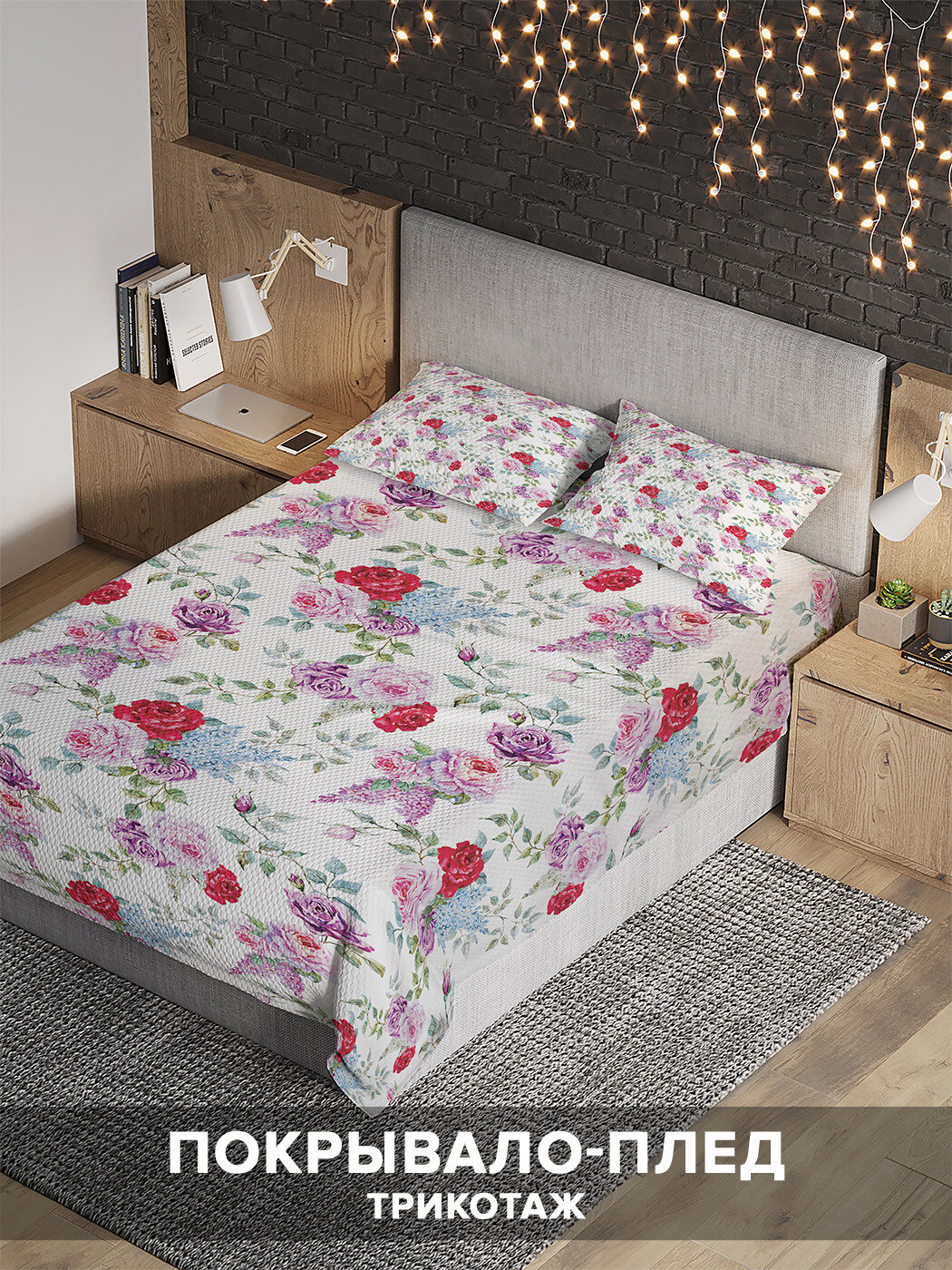 Благодаря используемым материалам, покрывало не мнется, сохраняет форму и хорошо удерживает тепло, что позволяет использовать его в качестве пледа или легкого одеяла. Вы можете создать единый стиль вашей спальни, подобрав шторы с аналогичным принтом. Обращаем внимание, что из-за особенностей производства яркость рисунка может отличаться от изображения на сайте. Допустимо отклонение в размерах полотна в пределах 5 см.