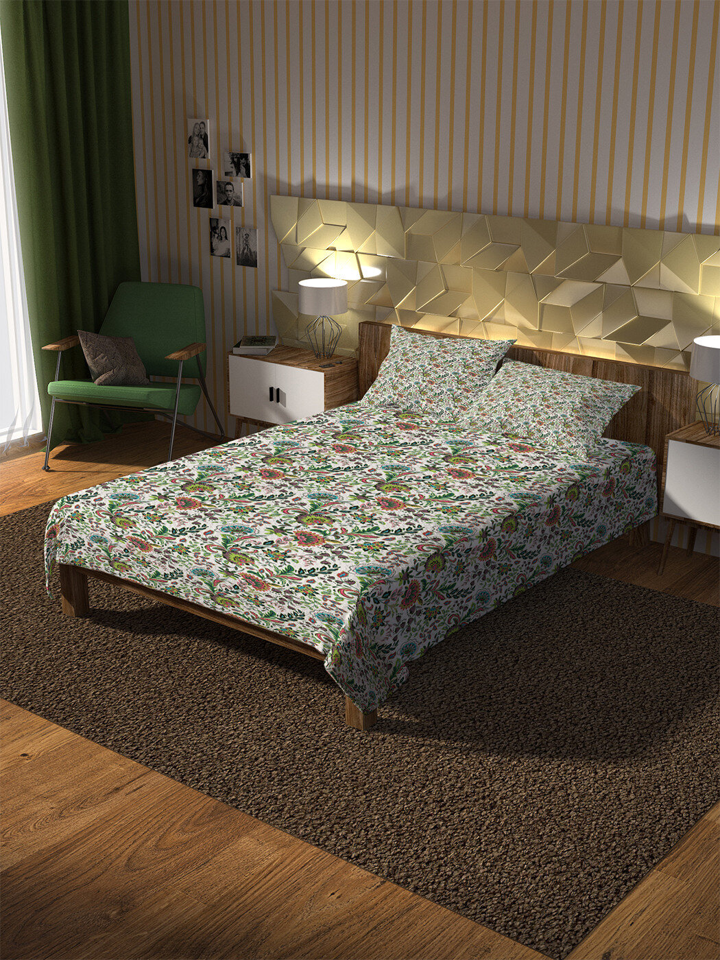 Под брендом JoyArty Вы можете подобрать шторы в одном дизайне с покрывалом, что позволит создать единый стиль вашей спальни.