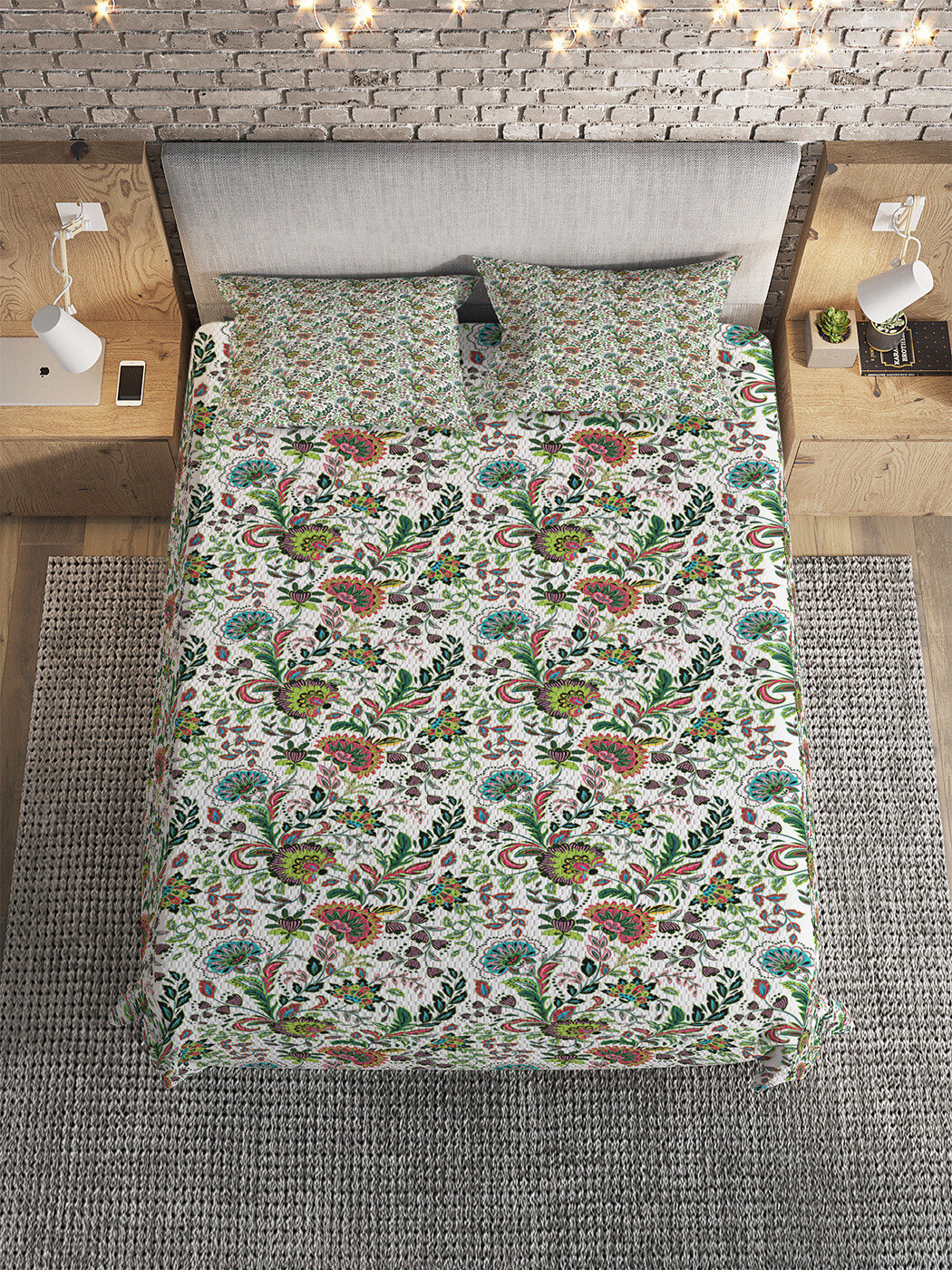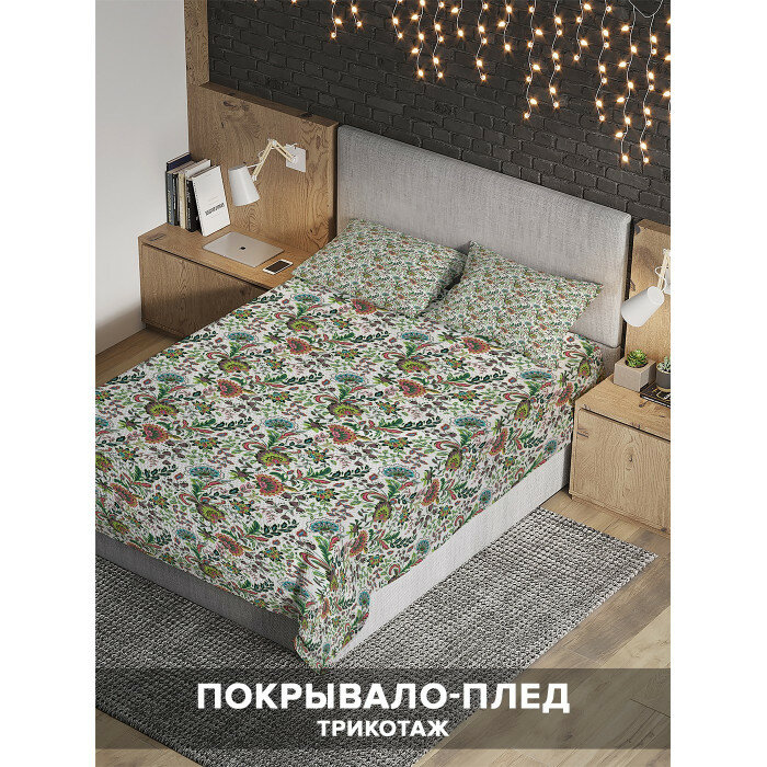 Модель: Покрывало на 2-спальную кровать Цветы и листья 235х220 и две наволочки 70x50