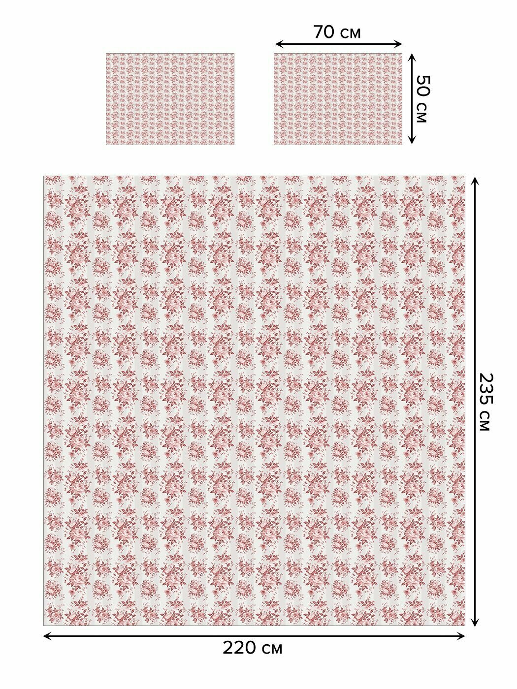 Комплектация: покрывало 220х235 см (2х-спальное), наволочки 50х70 см – 2 шт.