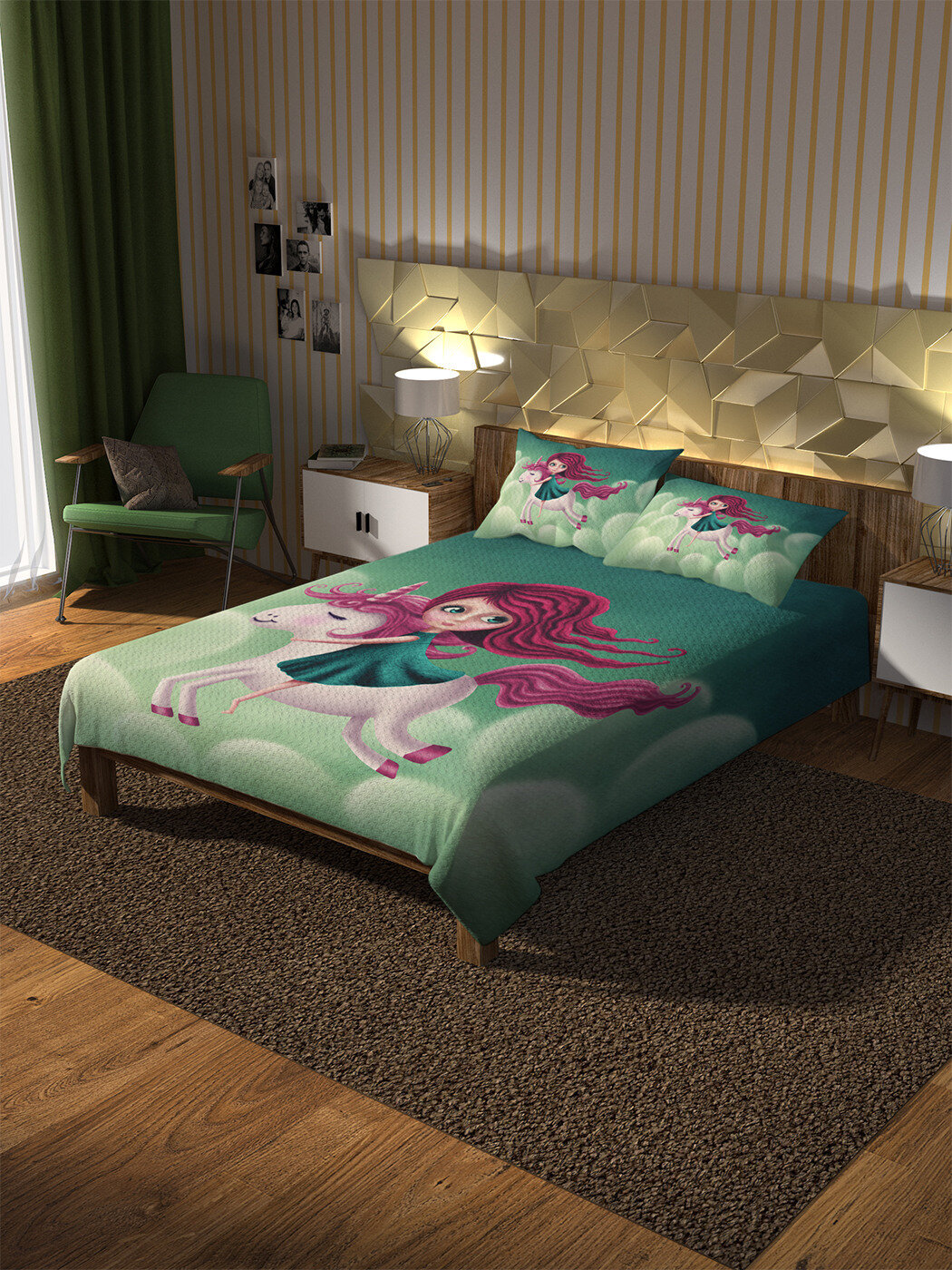 Модель: Покрывало на 1.5-спальную кровать Повелительница Единорогов 220х160 и две наволочки 70x50