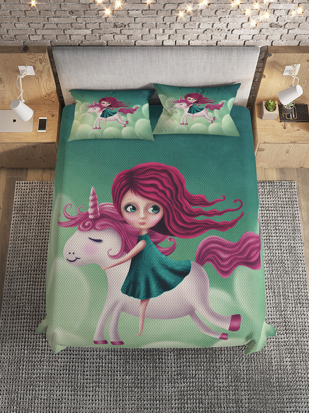 Покрывало Ambesonne 160х220 см с 2 наволочками 50x70 см Покрывало на 1.5-спальную кровать Повелительница Единорогов 220х160 и две наволочки 70x50 (размер: 1.5-спальный)
