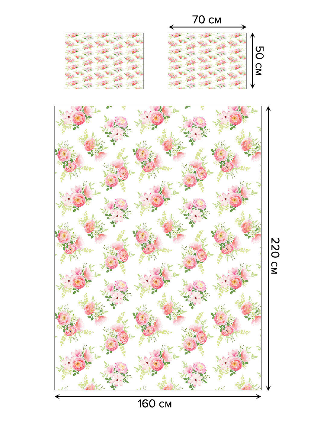 Комплектация: покрывало 160х220 см (1.5-спальное), наволочки 50х70 см – 2 шт.
