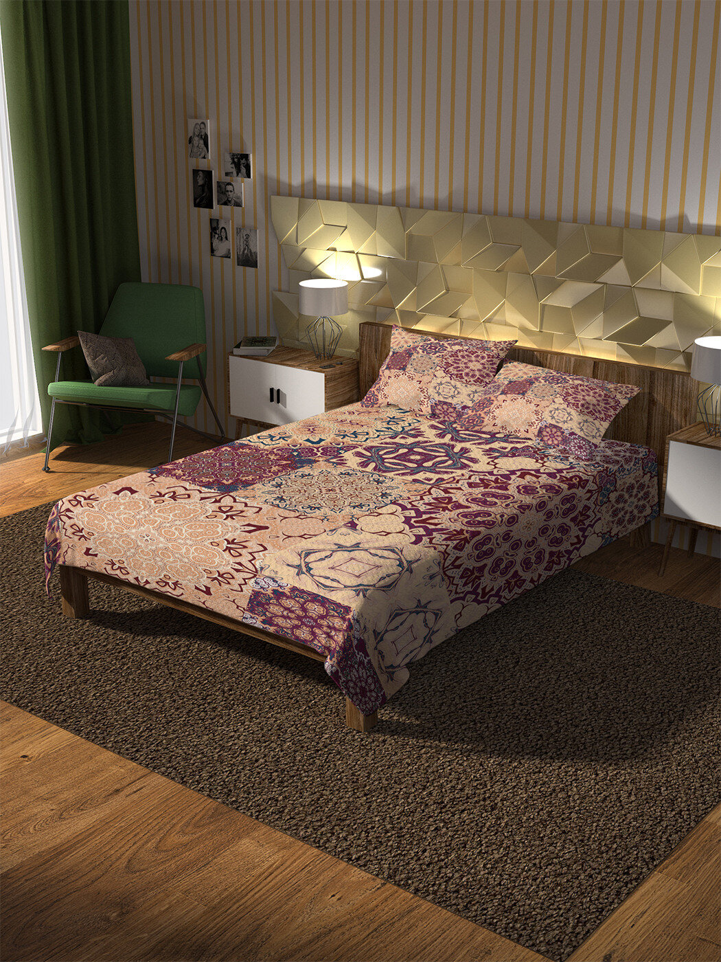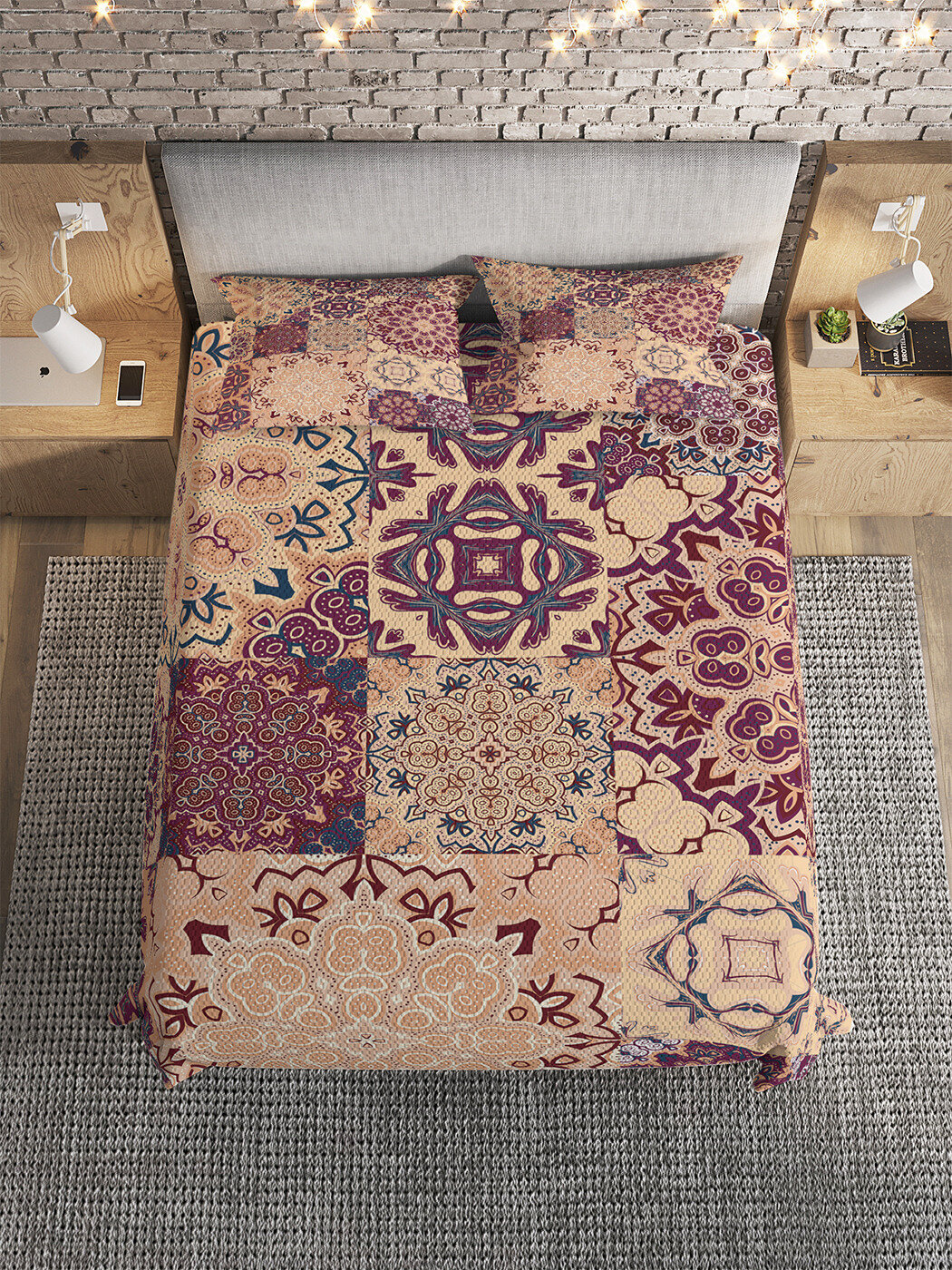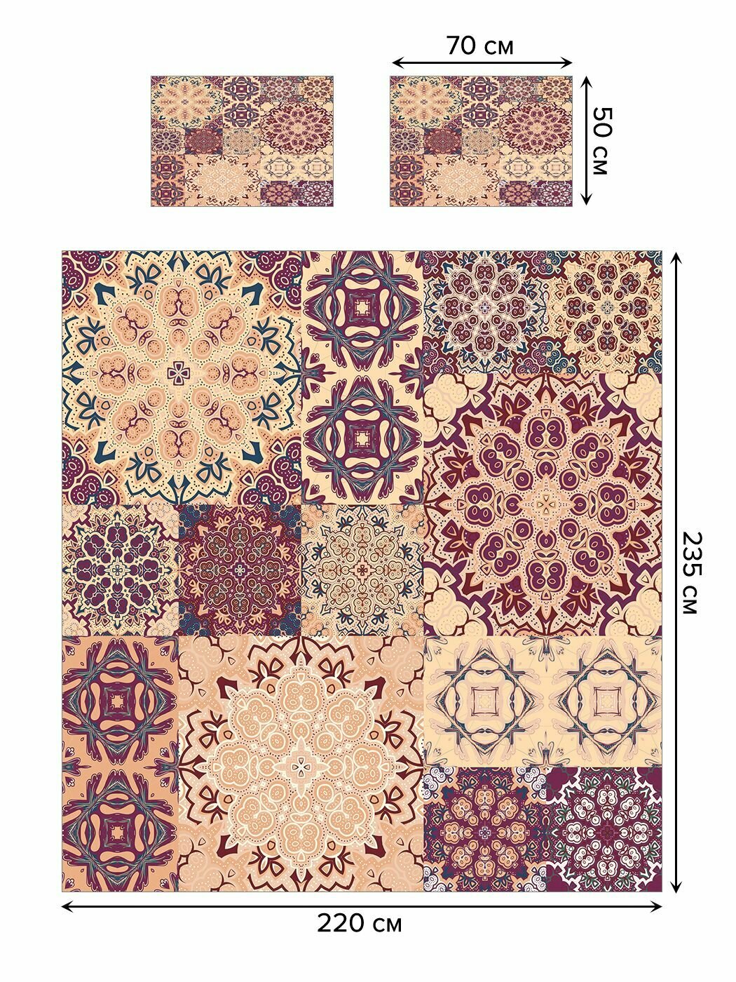 Модель: Покрывало Плитка с цветочными узорами 235x220 и две наволочки 70х50