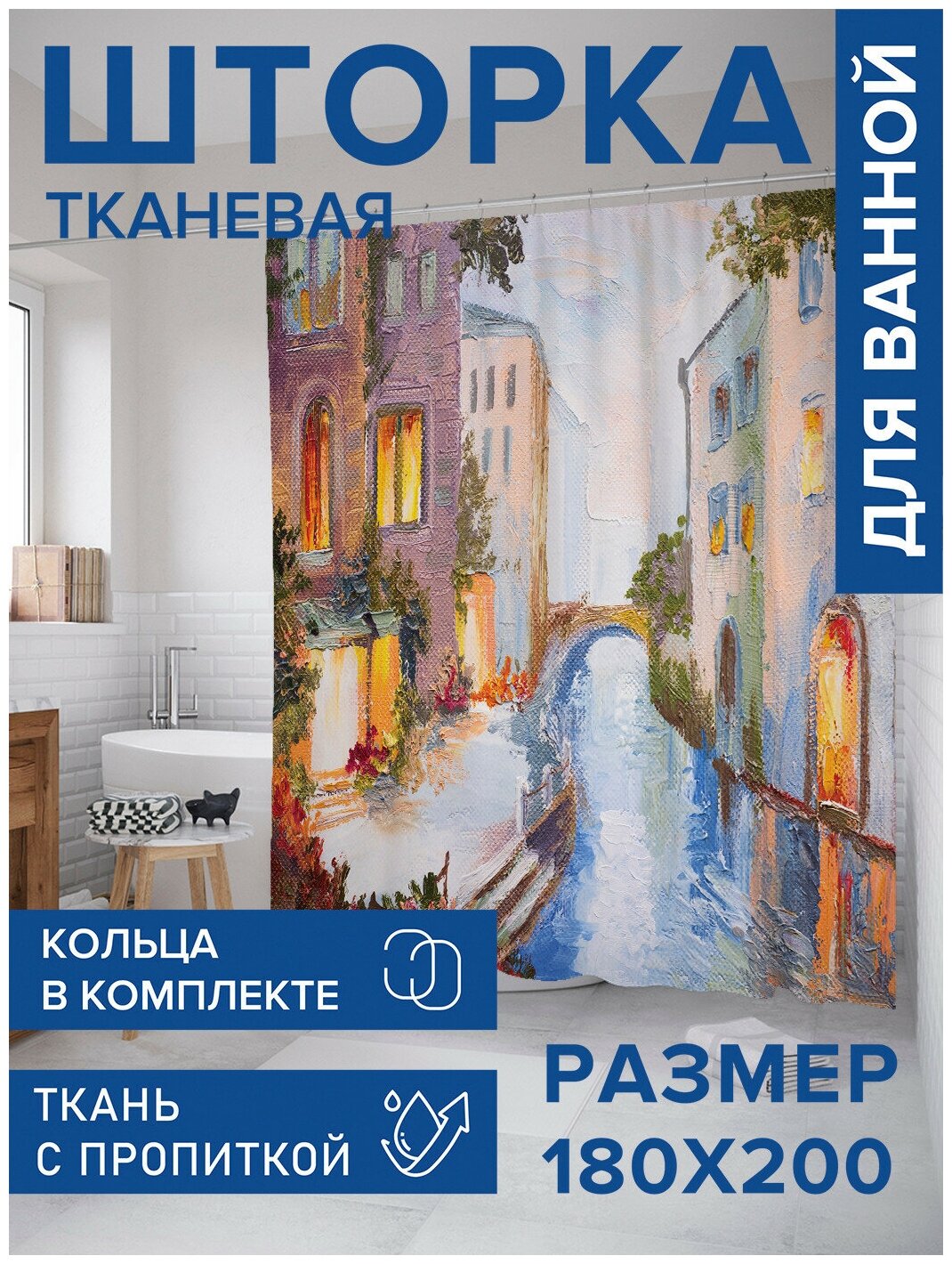 Шторка-занавеска для ванной JOYARTY Штора-занавеска для ванной из сатена с крючками Венецианский дворик 200х180 см (размер: 180х200)