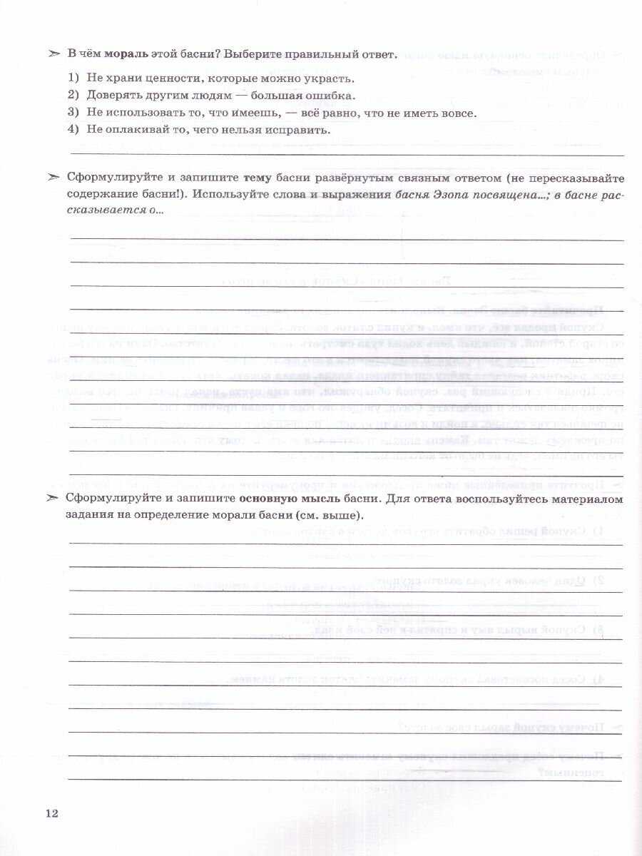 Данное пособие полностью соответствует федеральному государственному образовательному стандарту. Основная цель рабочей тетради по литературе - помочь пятиклассникам научиться воспринимать, понимать, анализировать и интерпретировать текст художественного произведения. Пособие не повторяет заданий учебника, что позволяет расширить содержание работы на уроке литературы с учётом особенностей подготов-ки и читательской компетенции учащихся. Тетрадь составлена таким образом, что с ней можно работать как по заданию учителя, так и самостоятельно.