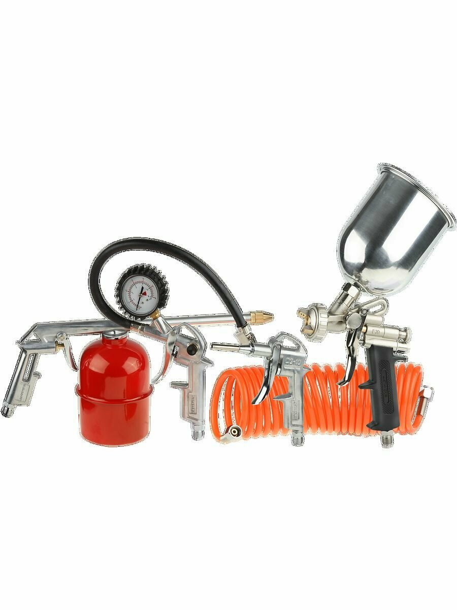 | Комплект поставки | краскораспылитель, пистолет для покрытий, пистолет продувочный, пистолет для подкачки шин, шланг |