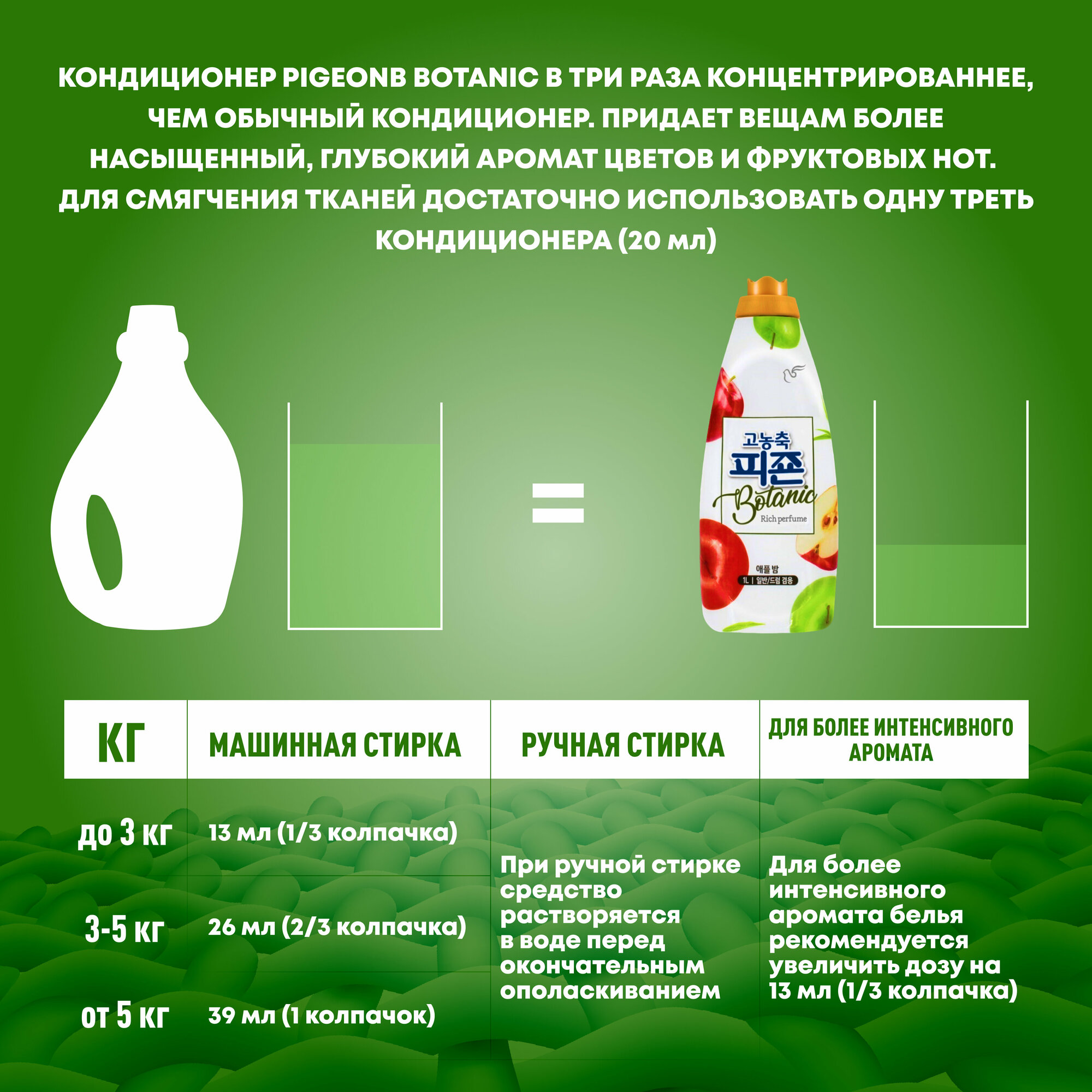 Концентрированный кондиционер Pigeon для одежды белья с ароматом яблока 1000мл
