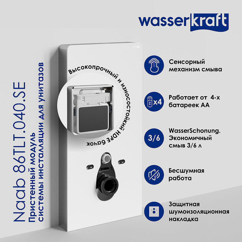 Пристенный модуль системы инсталляции для унитазов WasserKRAFT Naab белый 86TLT.040.SE.WH