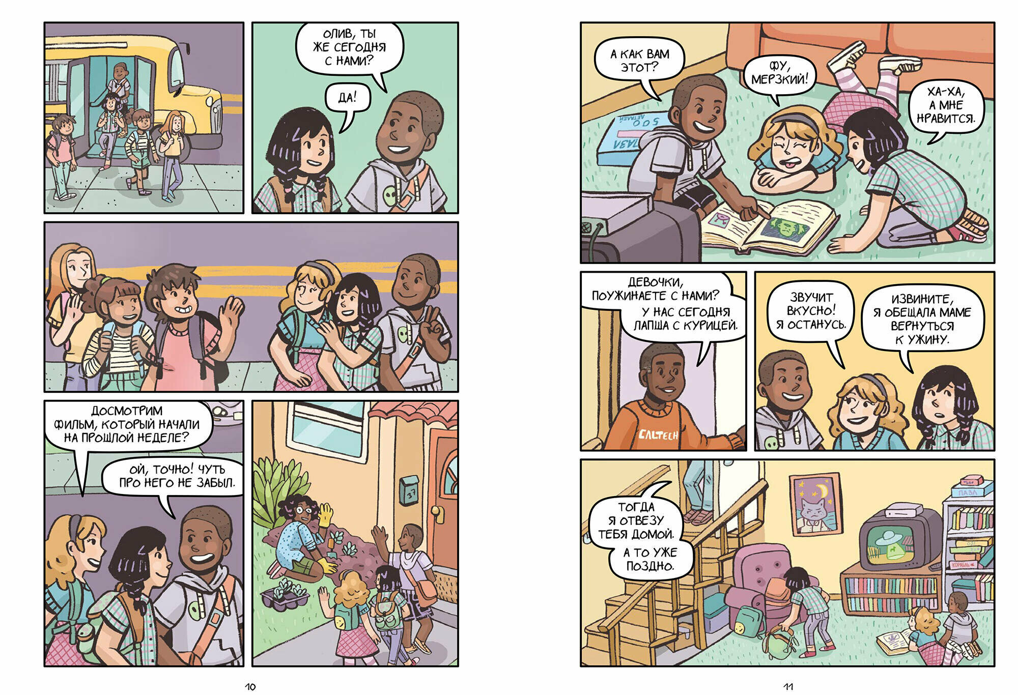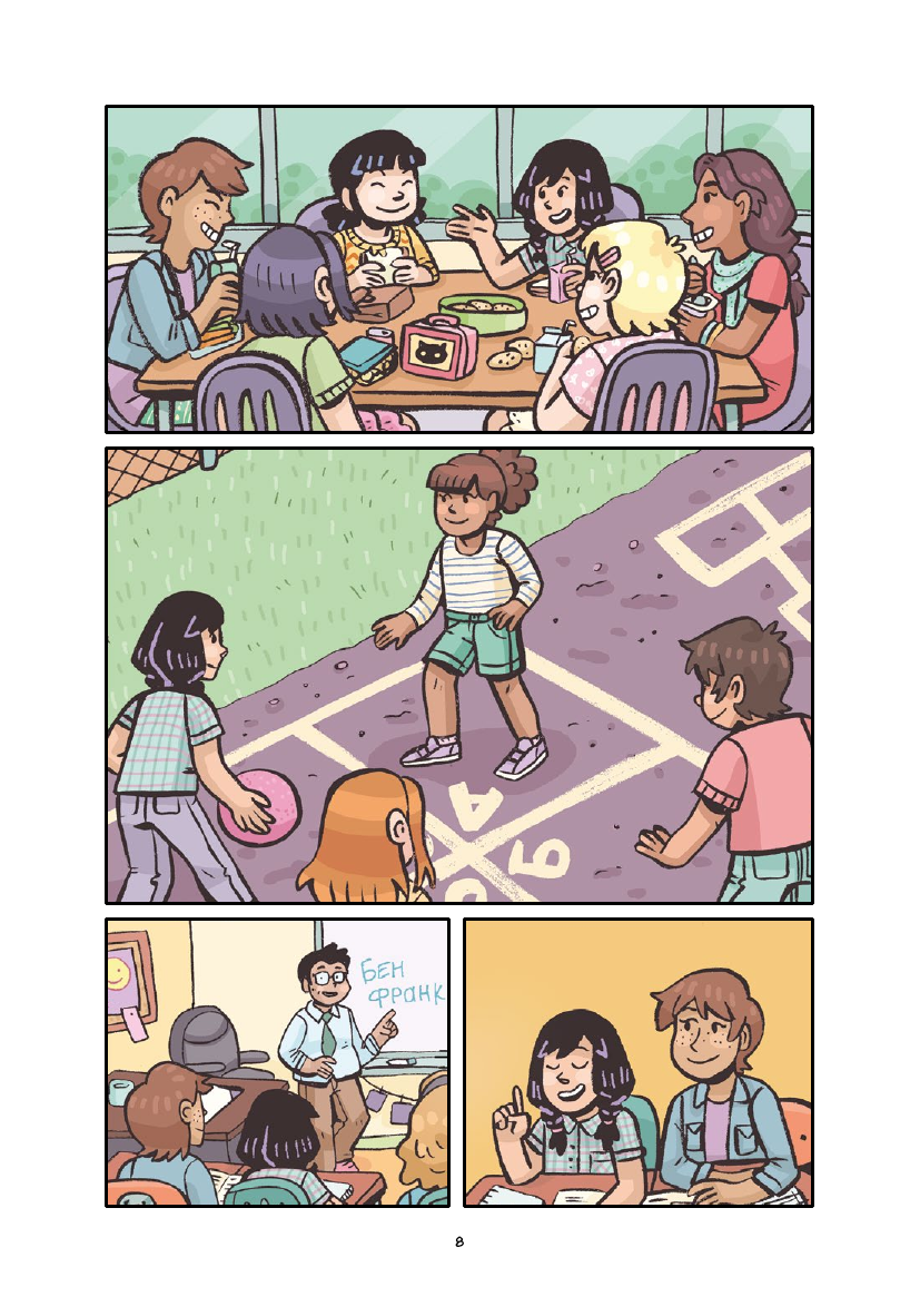 На самом деле этот комикс для младших школьников и для девочек - так как главная героиня девочка. Но мы не делим книги на такие категории и мой сын 6 лет с удовольствием слушает историю и тоже переживает за героиню. История где школьницу не берут в маленькие группы и как с этим справиться и не потерять дружбу.