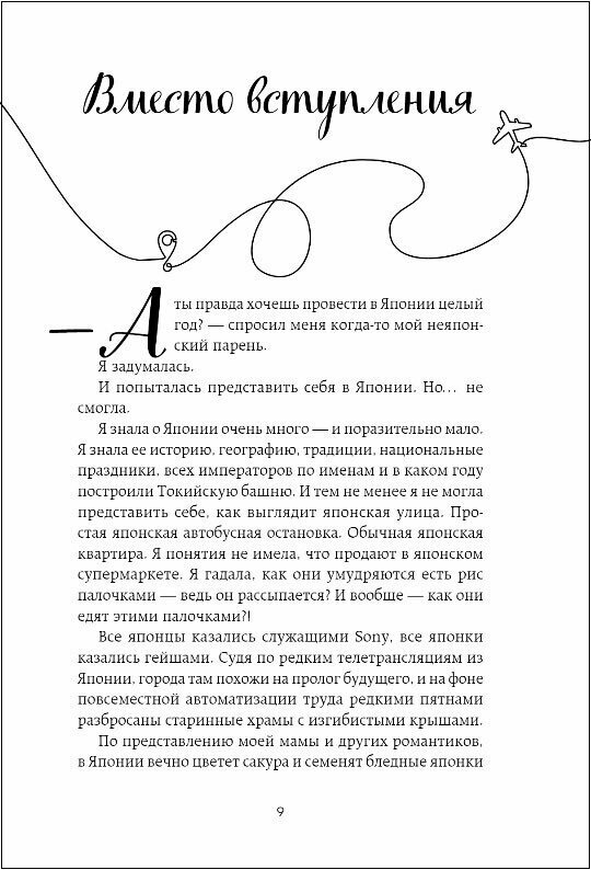 Книга переносит в невероятный мир Страны Восходящего Солнца! Написана лёгким языком. От содержания не оторваться: всё понятно и очень интересно. Расписаны малейшие нюансы жизни японцев, их культура, география, верования, еда, мода и многое другое. С каждой страницей открывается мир, будто захватывающее путешествие, рисуются города и достопримечательности. Если не можете поехать в настоящее путешествие - эта книга для Вас! Рекомендую! Оценка: 5+.