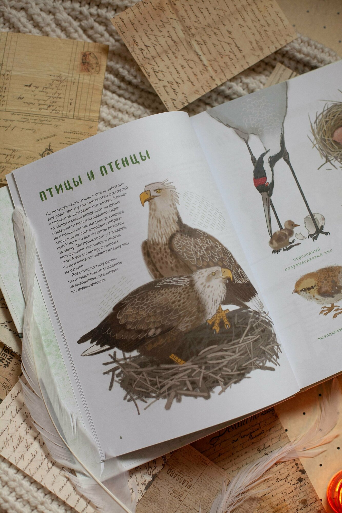 Отличное дополнение к нижке \"Птицы в городе\" от того же автора. Обложка твёрдая, листы плотные, иллюстрации красивые, в пастельных тонах. Птички нарисованы реалистично и очень живописно, картинки радуют глаз. Есть описания различных птиц, информации не очень много, но детям, младшим школьникам и дошкольникам, достаточно. Для детей эта книга будет очень познавательной, можно прочитать в книжке о какой-нибудь птичке и потом на прогулке рассматривать уже живых птичек, для ребёнка как небольшая игра по наблюдению. Считаю эту книжку отличным подарком для любого ребёнка, жду когда поступит в продажу))