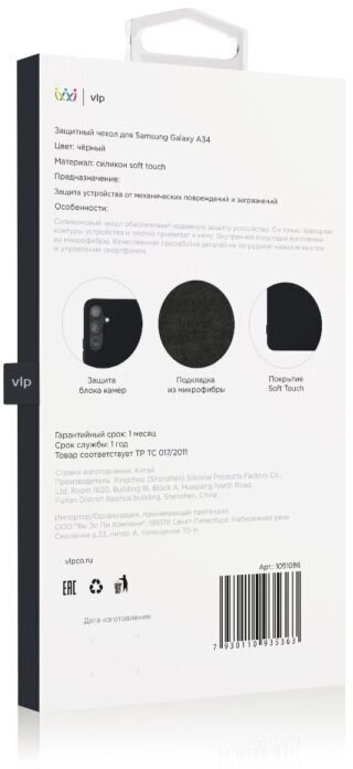 Чехол VLP Silicone Case для Galaxy A34, силикон черный