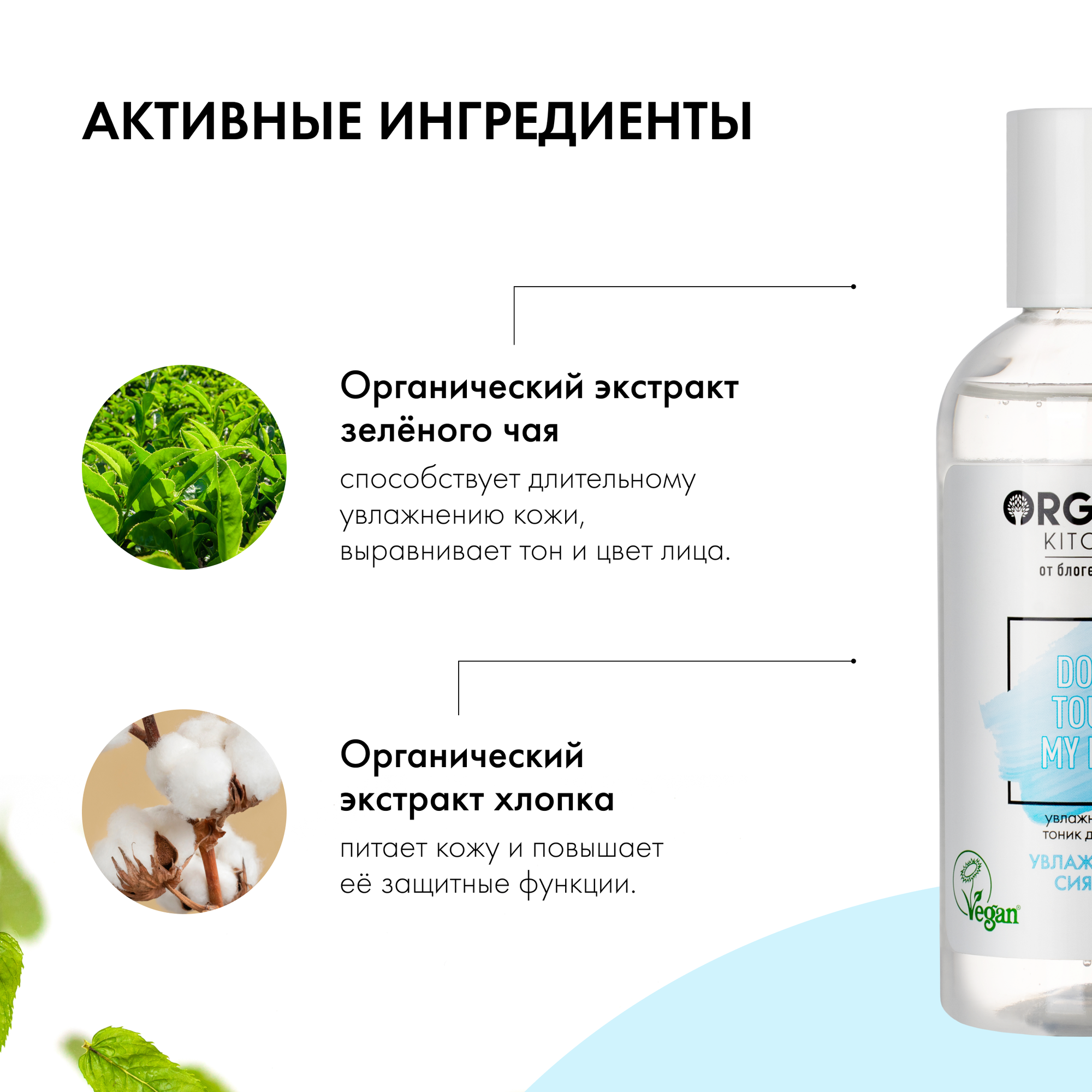 Органический экстракт зеленого чая: Увлажняет кожу, выравнивает тон и цвет лица.