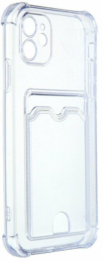 Мягкий и тонкий прозрачный силиконовый чехол с карманом (отсеком) для карты на iPhone 11. Он идеально повторяет его формы и кнопки и не придаёт габаритности устройству, а также защитит его от царапин и падений.