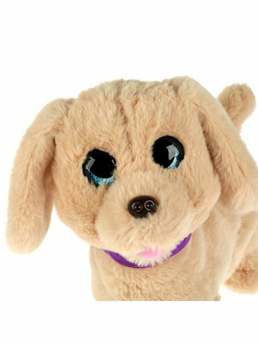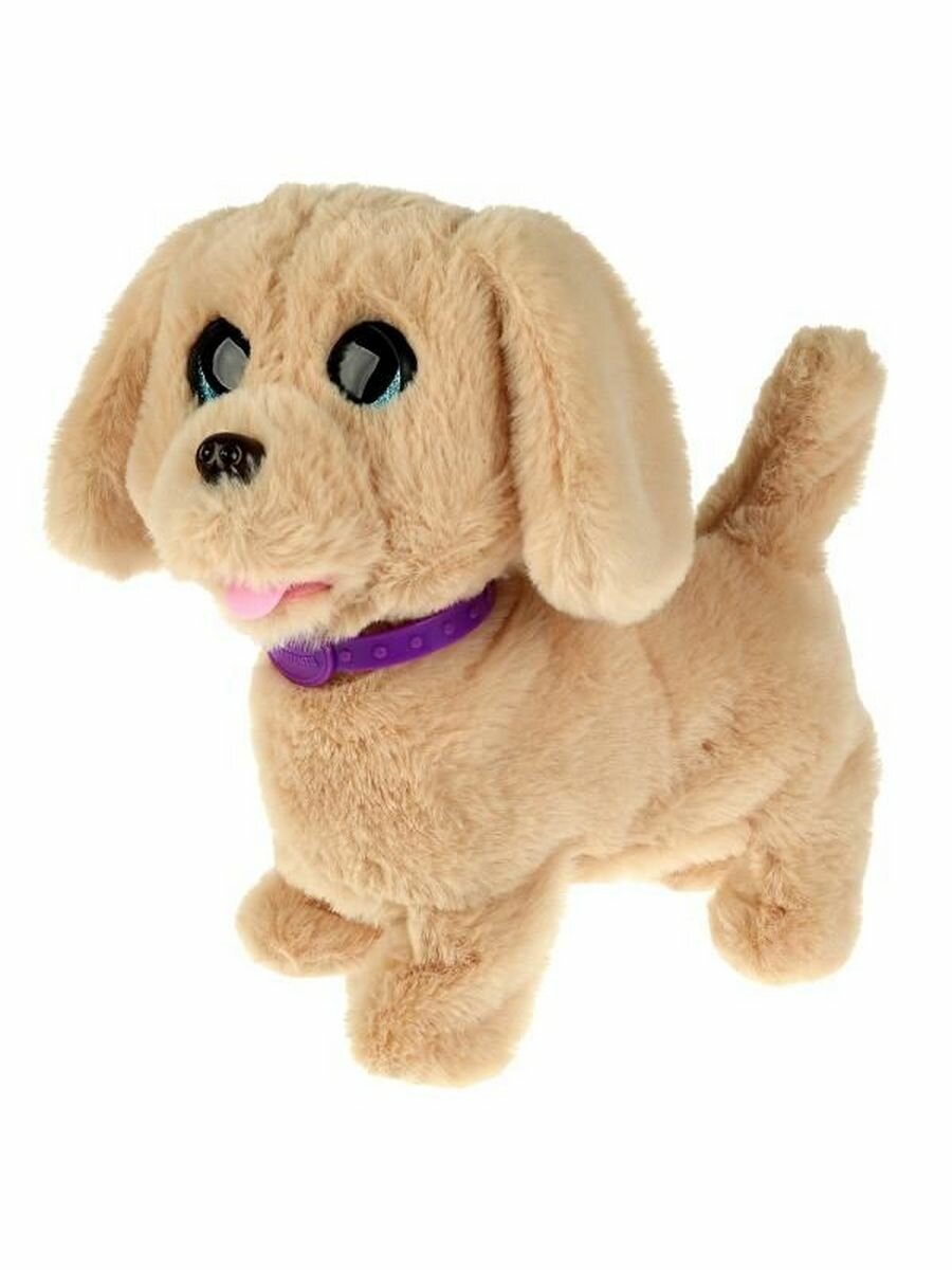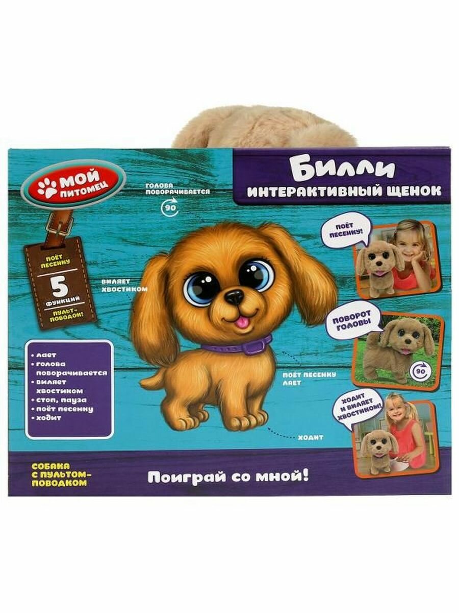 Этот очаровательный щенок совсем как настоящий. У Билли красивые глазки и умилительная мордочка. Бежевая шёрстка щенка очень приятная на ощупь. На Билли надет красивый фиолетовый ошейник. Милая игрушка подарит малышу массу положительных эмоций и научит заботиться о домашнем любимице.