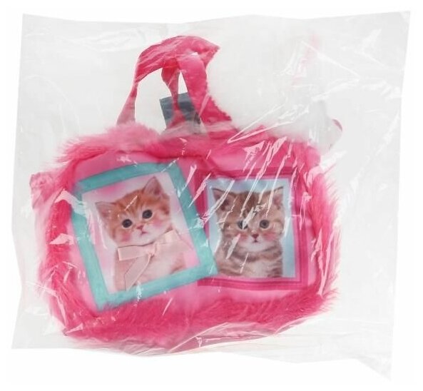 Белоснежная шёрстка кошечки сделана из мягкого материала, поэтому игрушку очень приятно обнимать и гладить. У питомца очаровательная мордочка с голубыми глазками и розовым носом из блестящей ткани, которая вызовет у ребёнка самые трепетные чувства. Шею котёнка украшает жемчужное ожерелье. Розовая сумочка с двумя ручками, меховой отделкой и принтом, на котором изображены милые котята, придётся по вкусу маленьким модницам. Кошечку можно сажать в сумочку и брать с собой на прогулку или в гости.