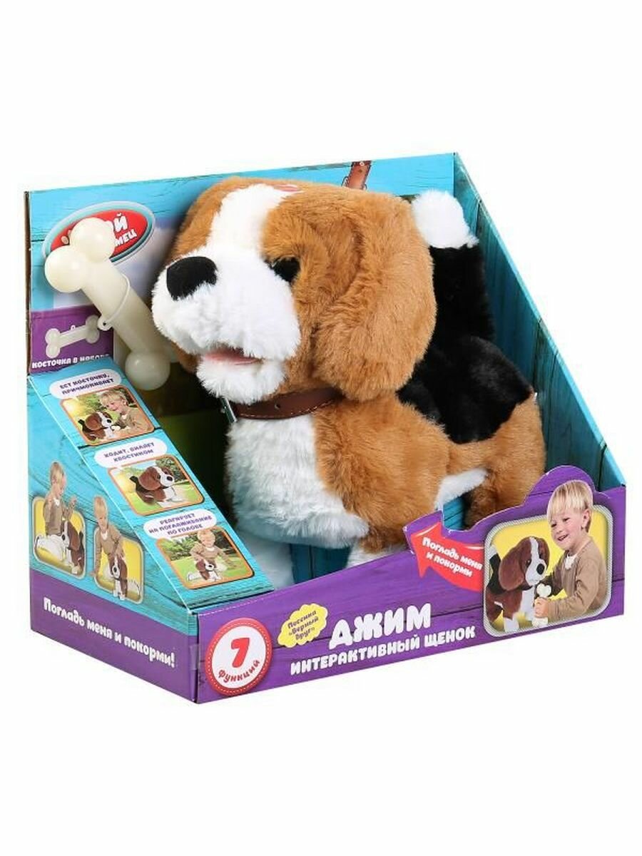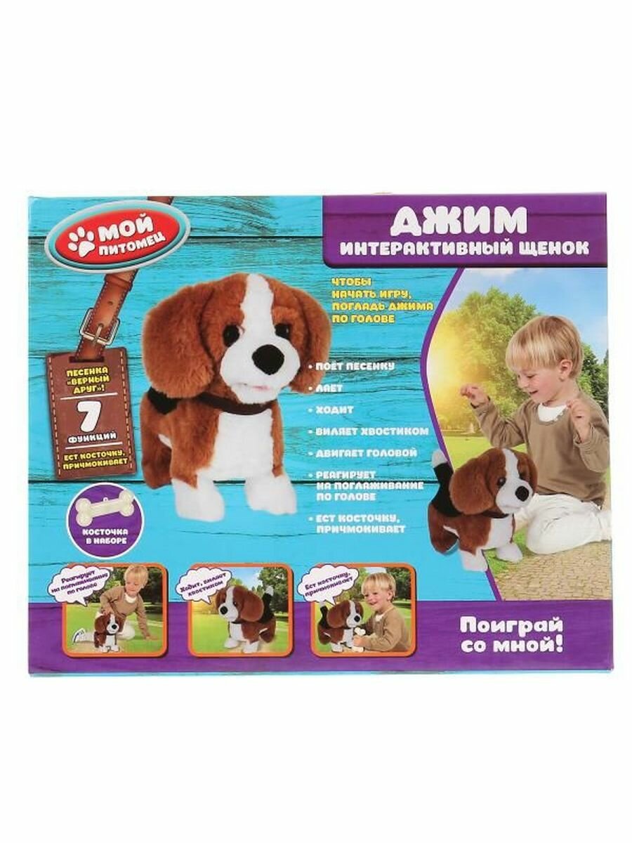 Интерактивная игрушка Мой питомец щенок Джим с косточкой 22 см