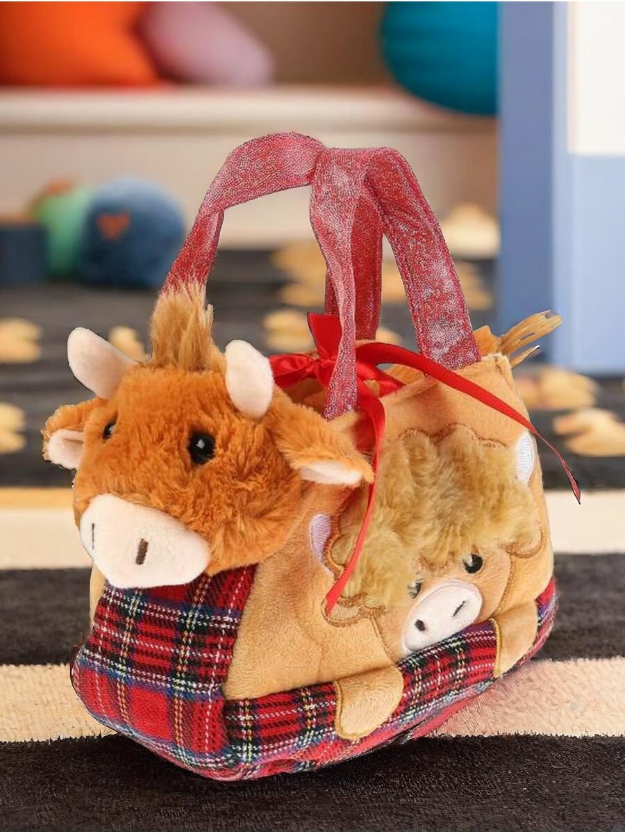 Мягкая игрушка Мой питомец Бычок с красной сумочкой 15 см (размер: маленькая)