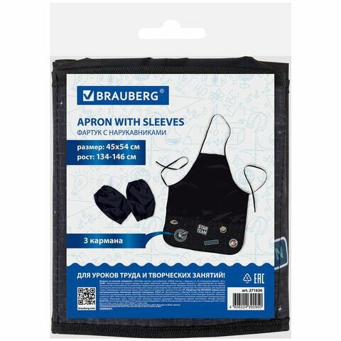 Фартук с нарукавниками Brauberg - незаменимая вещь для защиты одежды на уроках труда и во время занятий творчеством. Фартук изготовлен из водоотталкивающего материала, предусмотрен для многоразового использования.