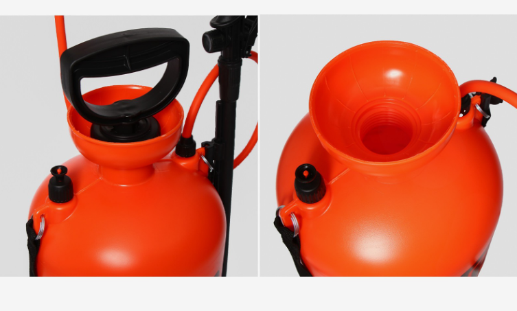 Мерная шкала на баке показывает остаток содержимого. Предохранительный клапан срабатывает при избыточном давлении, что обеспечивает безопасность в процессе эксплуатации опрыскивателя. Алюминиевый брандспойт надежен и удобен в применении. Регулировка струи на брандспойте даёт возможность использовать опрыскиватель как для защиты растений от вредителей, так и для полива.