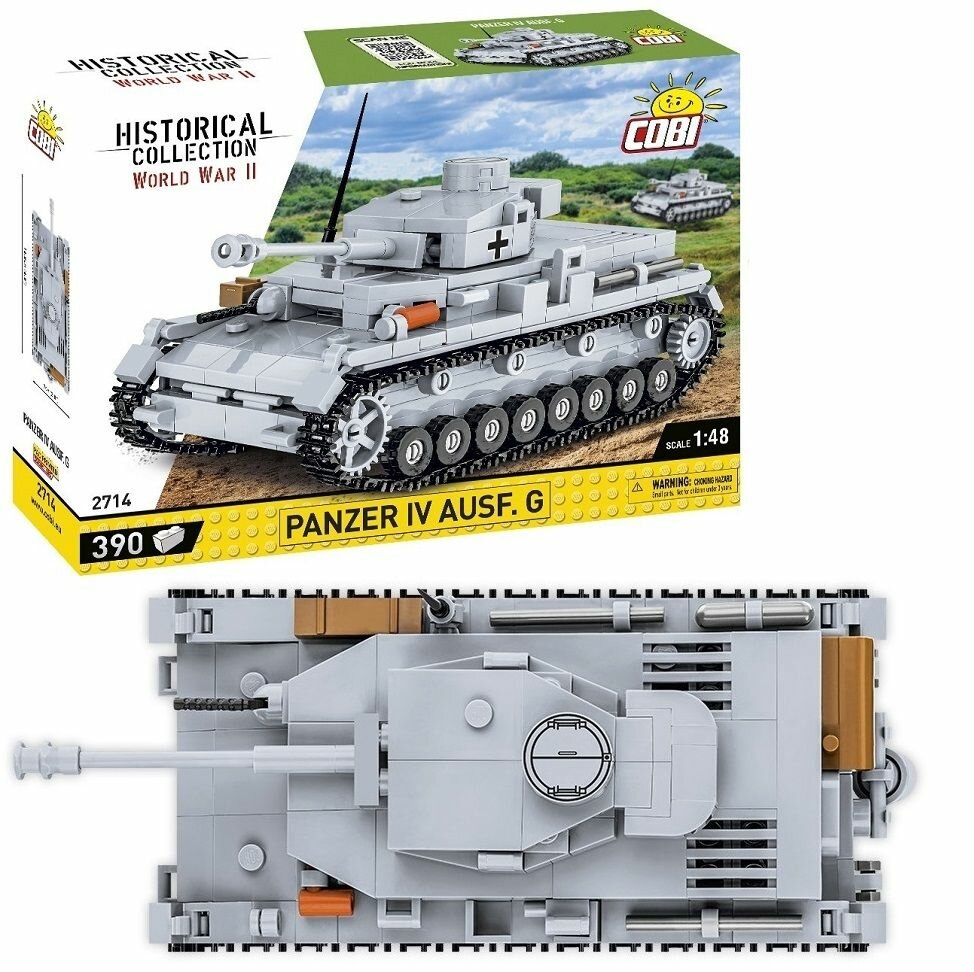 Конструктор Cobi Немецкий танк Panzer IV Ausf.G арт. 2714 развивает творческое мышление, усидчивость и мелкую моторику. Выполнен из безопасных для здоровья материалов. Panzerkampfwagen IV — немецкий средний танк периода Второй мировой войны. Это была одна из лучших бронемашин того периода. Было разработано и построено множество различных модификаций этого танка. Многочисленные варианты отличались толщиной брони и вооружением. На протяжении всего периода производства с 1938 по 1945 год Panzer IV имел статус основного боевого танка. До 1942 года это был самый тяжелый танк Третьего рейха. Блок Panzer IV был воспроизведен с вниманием к деталям в мас шт.абе 1:48.