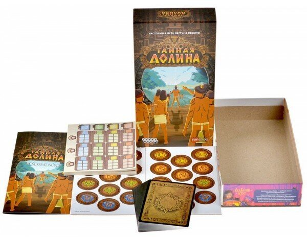 Все за мной “Тайная долина” – настольная игра, в которой вы возглавите племя ацтеков. Вам предстоит изучить здешние земли и выбрать наиболее эффективный способ расселения своего племени. Создавайте ландшафт, возводите поселения в богатых ресурсами местах и зарабатывайте победные очки за удачное расположение поселений.