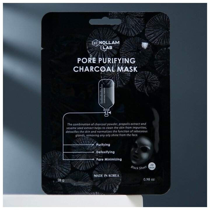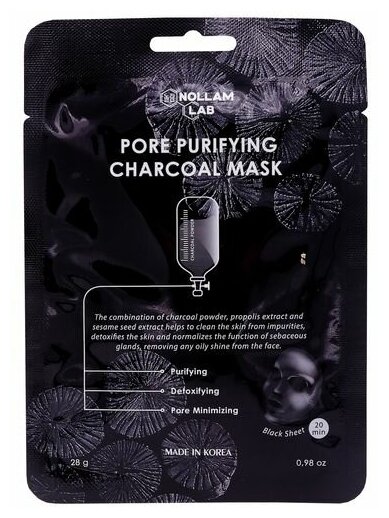Угольная тканевая маска для очищения лица 23 г Nollam Lab (ЭХ99989442869)