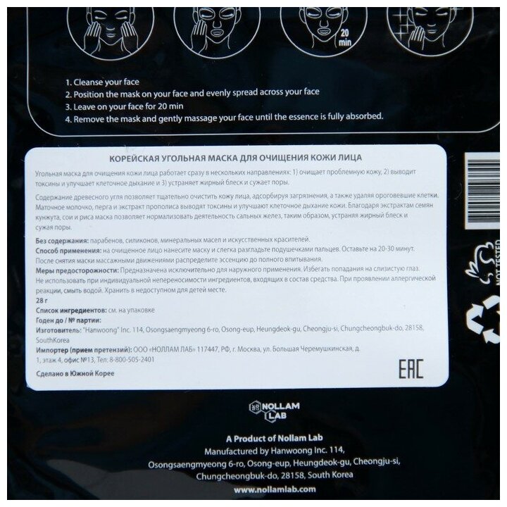 На сегодняшний день товар «Угольная тканевая маска для очищения лица 23 г Nollam Lab (ЭХ99989442869)» можно купить с кешбеком в 1 магазине: Яндекс.Маркет