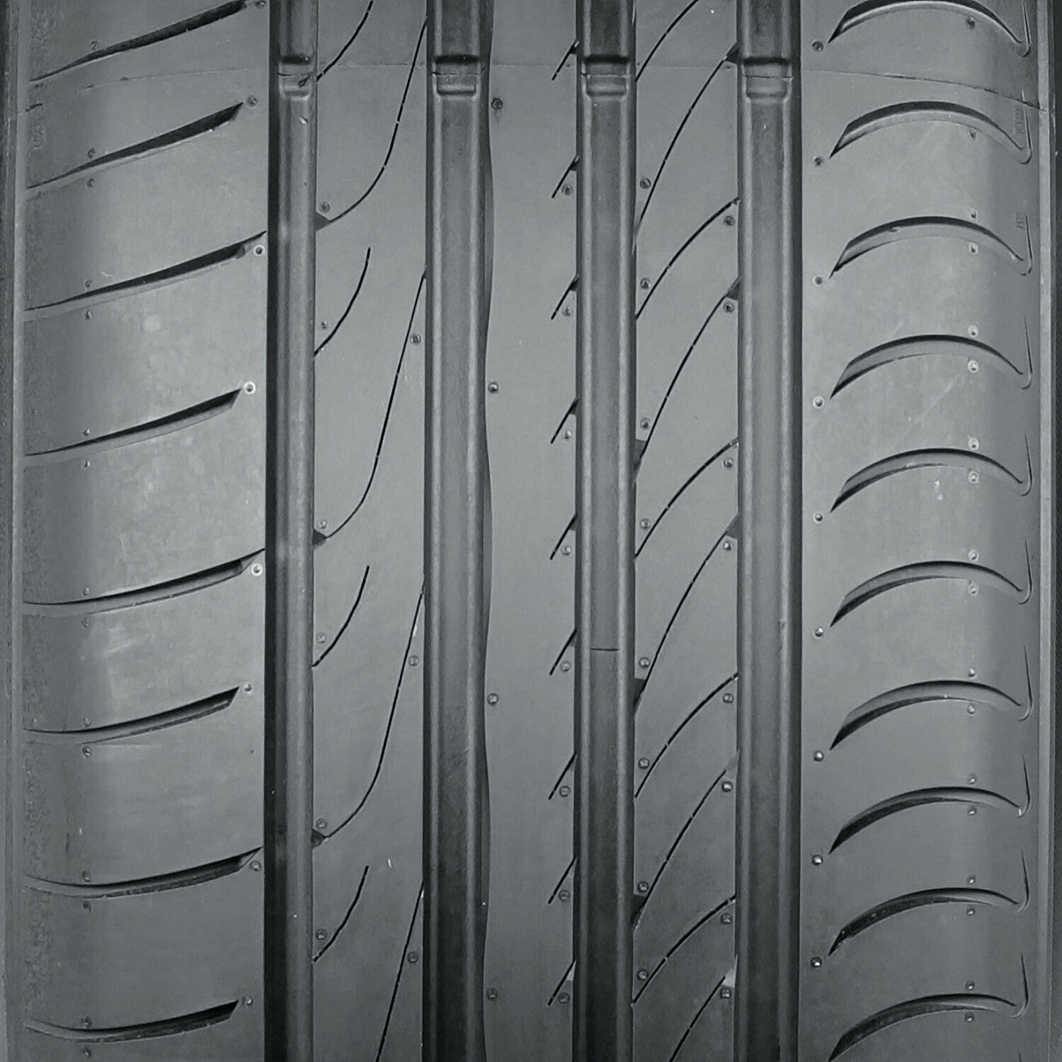 У шины асимметричный рисунок протектора. Его узор обеспечивает чёткую курсовую устойчивость при движении прямо. Надёжное сцепление шины с дорогой обеспечивают небольшие насечки на протекторе.
