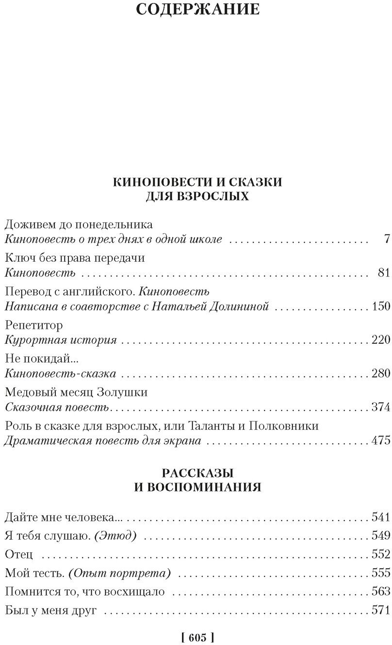 Отлично изданная психологически безупречная книга. Интересным для меня оказалось, что та же повесть \"Доживём до понедельника\", едва ли не дословно повторённая в знаменитом фильме с крайне хорошо вписавшимся в него знаменитым Вячеславом Тихоновым воспринимается значительно тоньше и красочнее фильма.