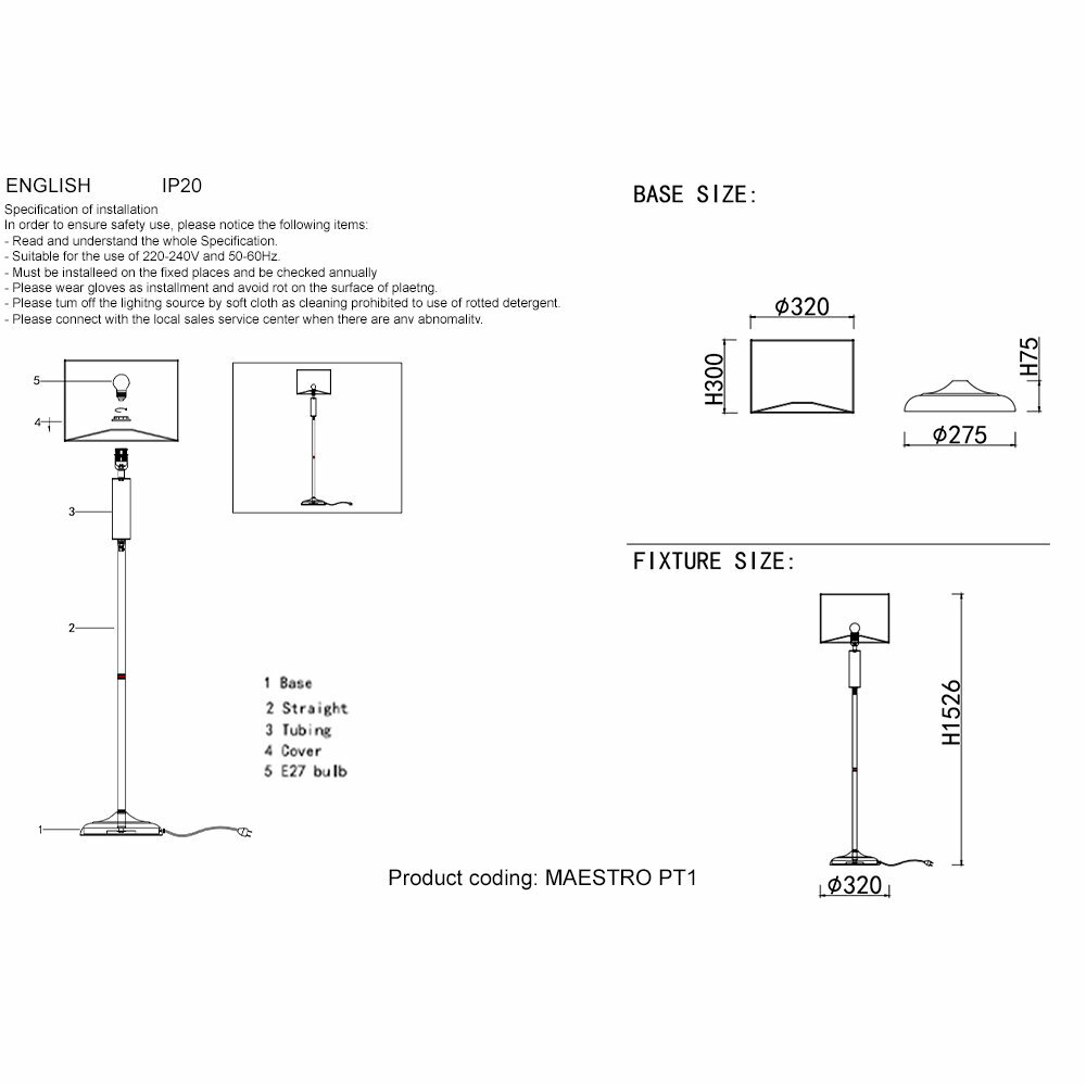 Торшер Crystal Lux Maestro PT1 Chrome Белый Хром
