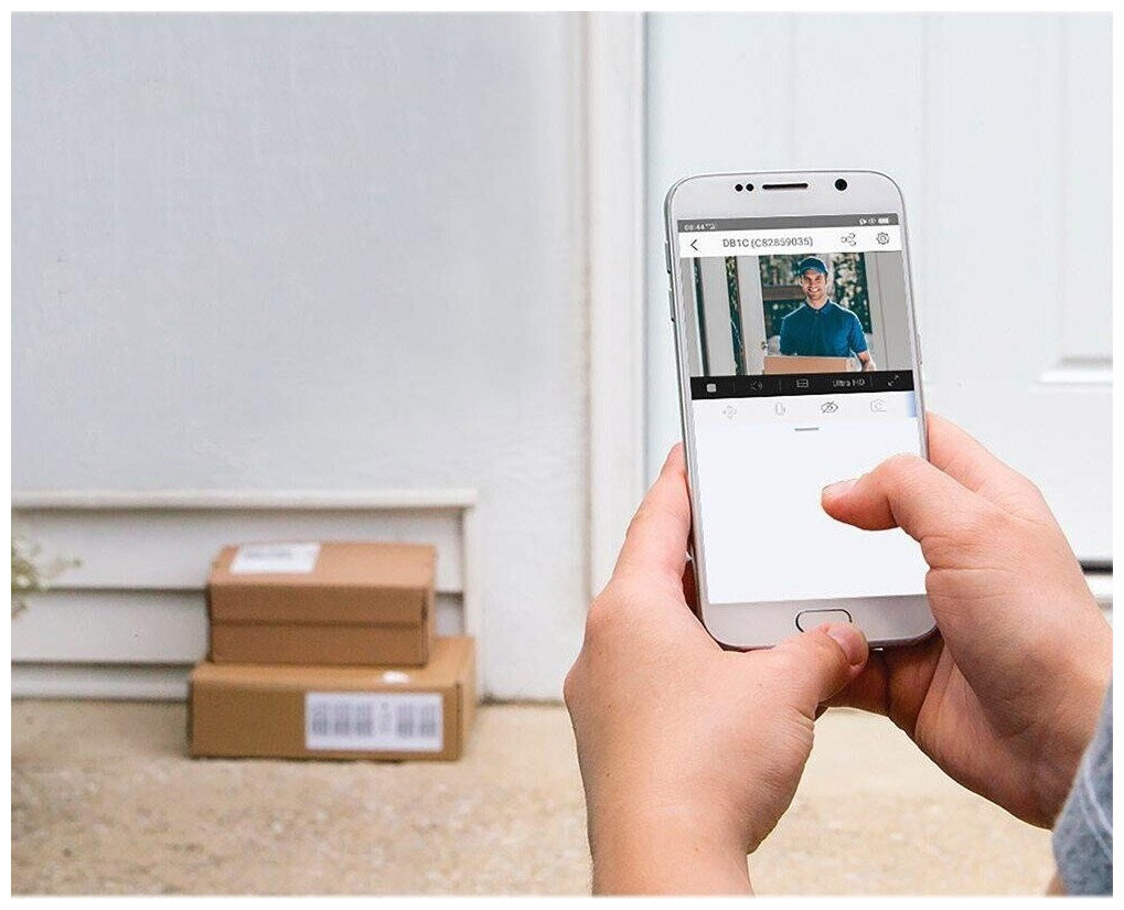 Наслаждайтесь высококачественным видеочатом с посетителями и следите за тем, что происходит у вашей входной двери, прямо с телефона. DB1C — это мощный дверной видеозвонок со встроенным искусственным интеллектом.