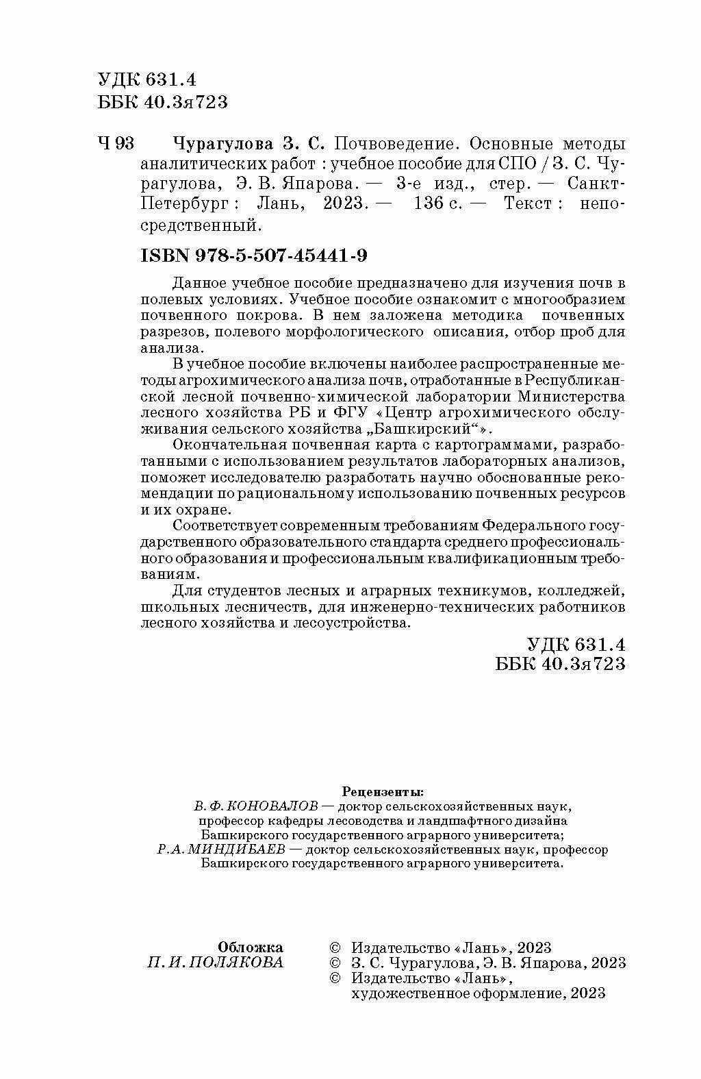 Почвоведение. Основные методы аналитических работ. Учебное пособие для СПО (Чурагулова Зила Султановна, Япарова Эльвира Венеровна); Лань, 2023