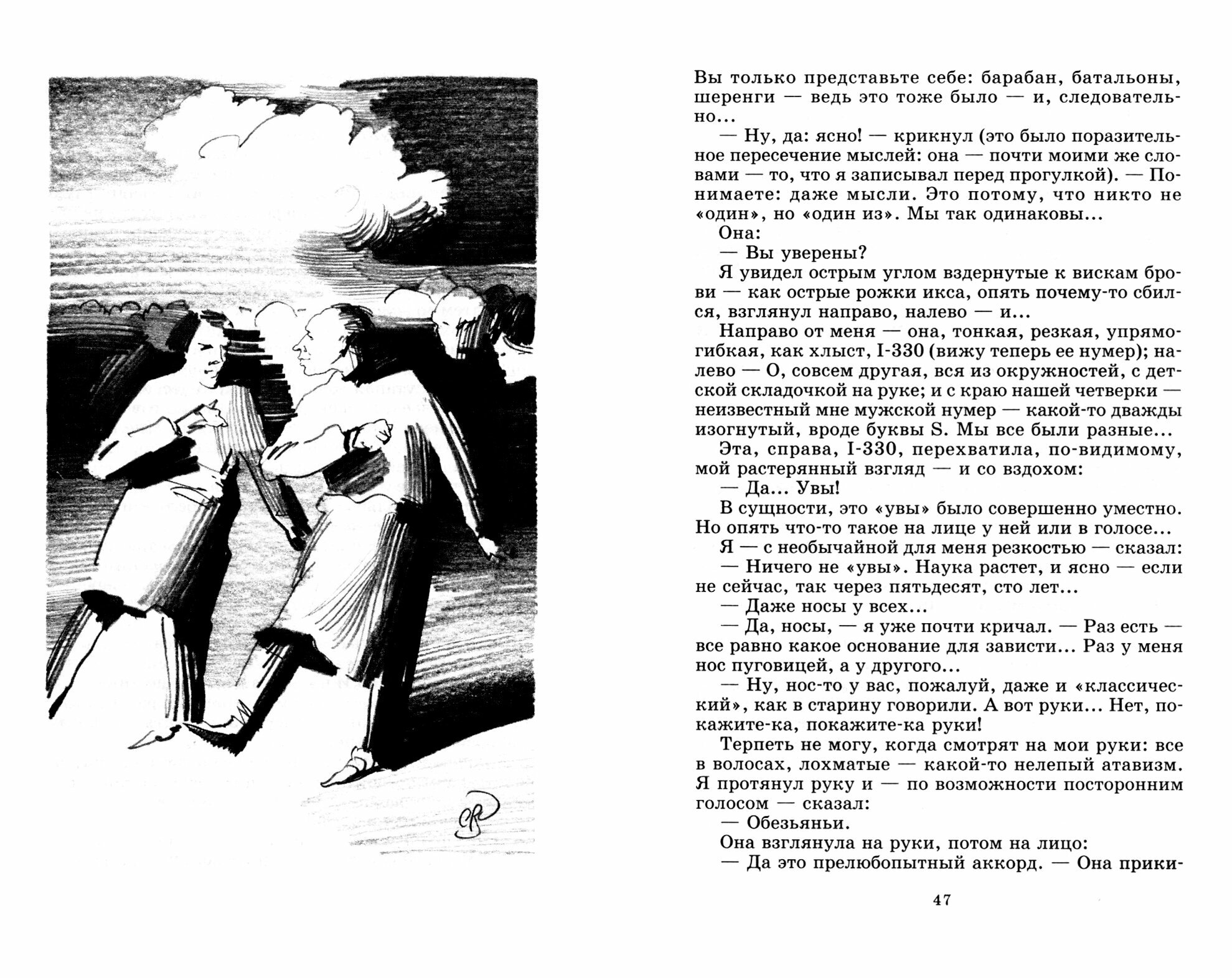 Пожалуйста это лучшее произведение, что я прочла в этом году. Роман «Мы» меня просто поразил. Этот роман Евгения Замятина заставляет задуматься над устоями и правилами общества, в котором мы живем. Также мне очень понравилось оформление книги ( в виде конспектов, которые велись от первого лица жителя «правильного» общества ), дальше рассказывать сюжет не буду, лучше его прочитать! Единственное, что меня малость взбесило это язык. Слишком он для меня математический. Но все же советую данную книгу вам прочитать.