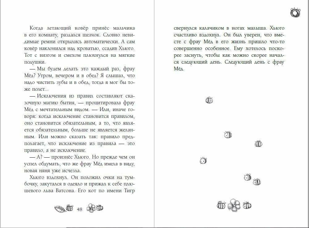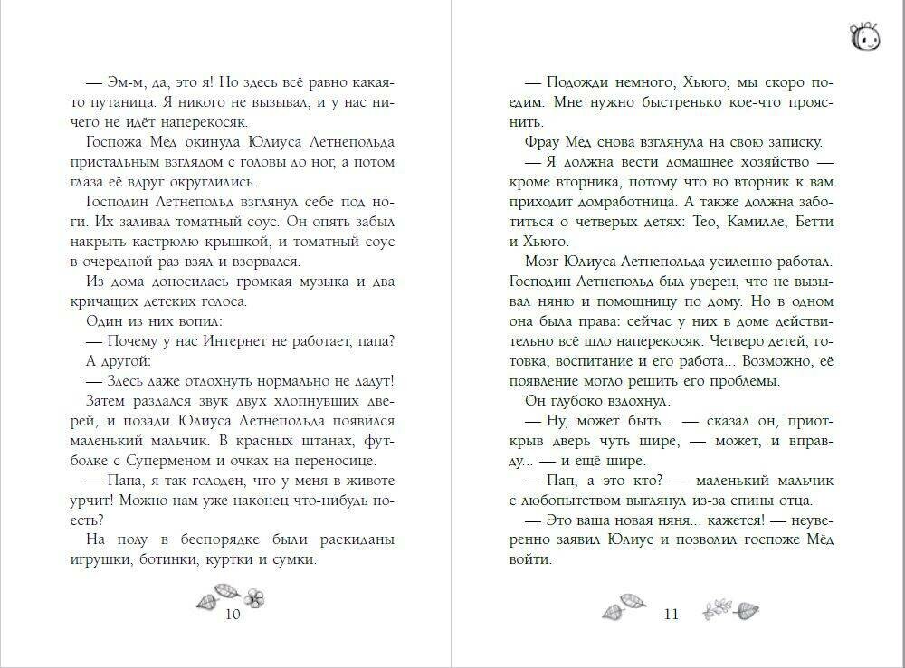 Хотите полетать на ковре-самолёте? Подружиться с монстром из ночных кошмаров? Стать увереннее в себе и не думать о том, что о вас говорят одноклассники? Очутиться в волшебном мире, который спрятан прямо посреди улицы, у всех под ногами? С фрау Мёд нет ничего невозможного! Однажды эта необычная няня появилась на пороге домика Летнепольдов, где живёт целых четыре ребёнка, и принесла с собой полный чемодан чудес и приключений… Готовы узнать, каких?