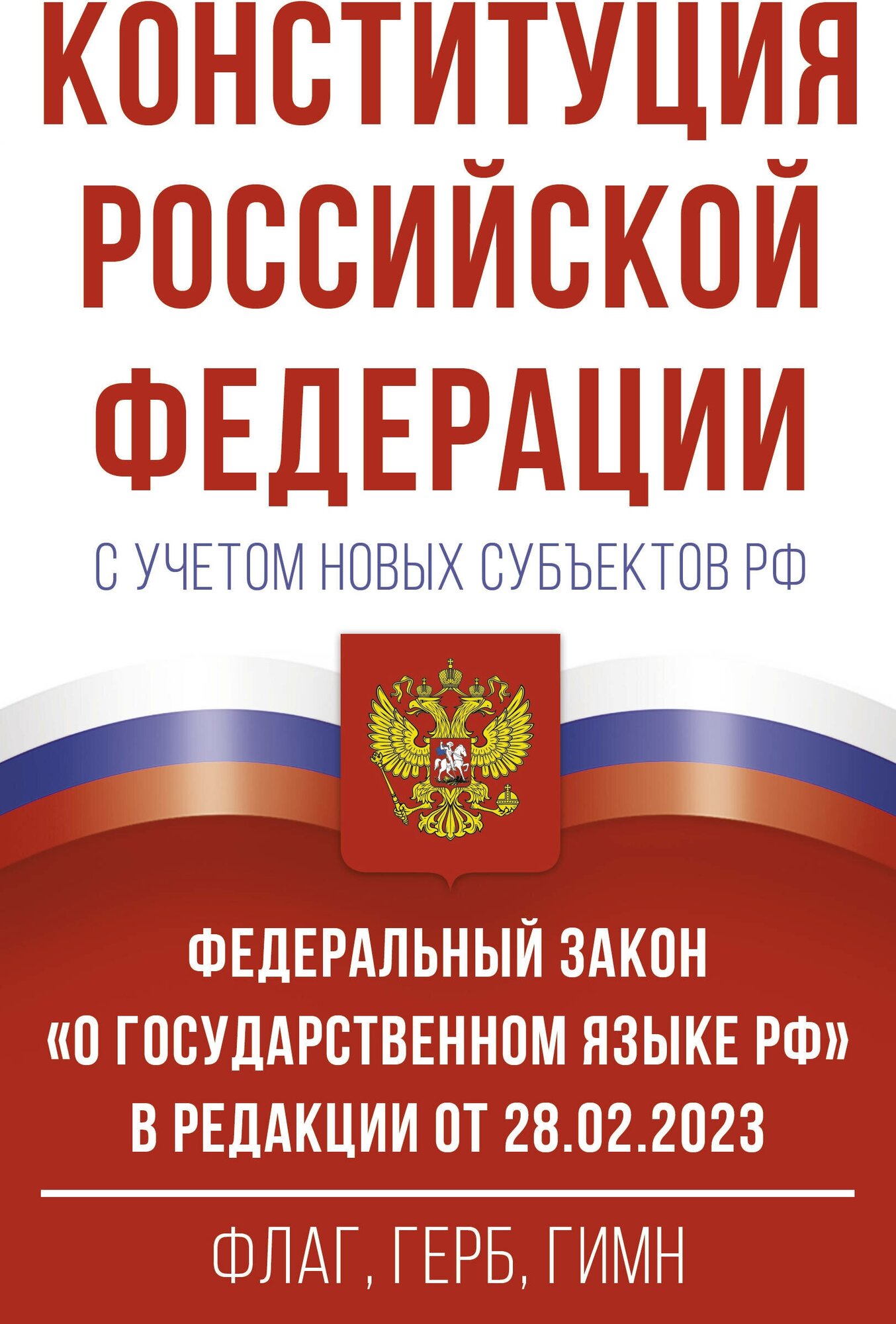 Конституция Российской Федерации с учетом новых субъектов РФ и Федеральный закон "О государственном языке РФ" в редакции от 28.02.2023. Флаг герб ги (Группа авторов); Издательство АСТ, 2023