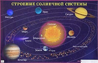 На этом плакате схематично представлено строение Солнечной системы. При оформлении плаката использовались реальные фотографии планет Солнечной системы.