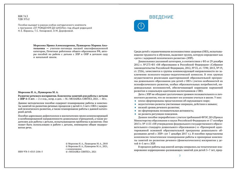 КРО. Развитие речевого восприятия. 4-5 лет. Конспекты занятий. ФГОС (Морозова И. А., Пушкарева М. А.); Мозаика-Синтез, 2021
