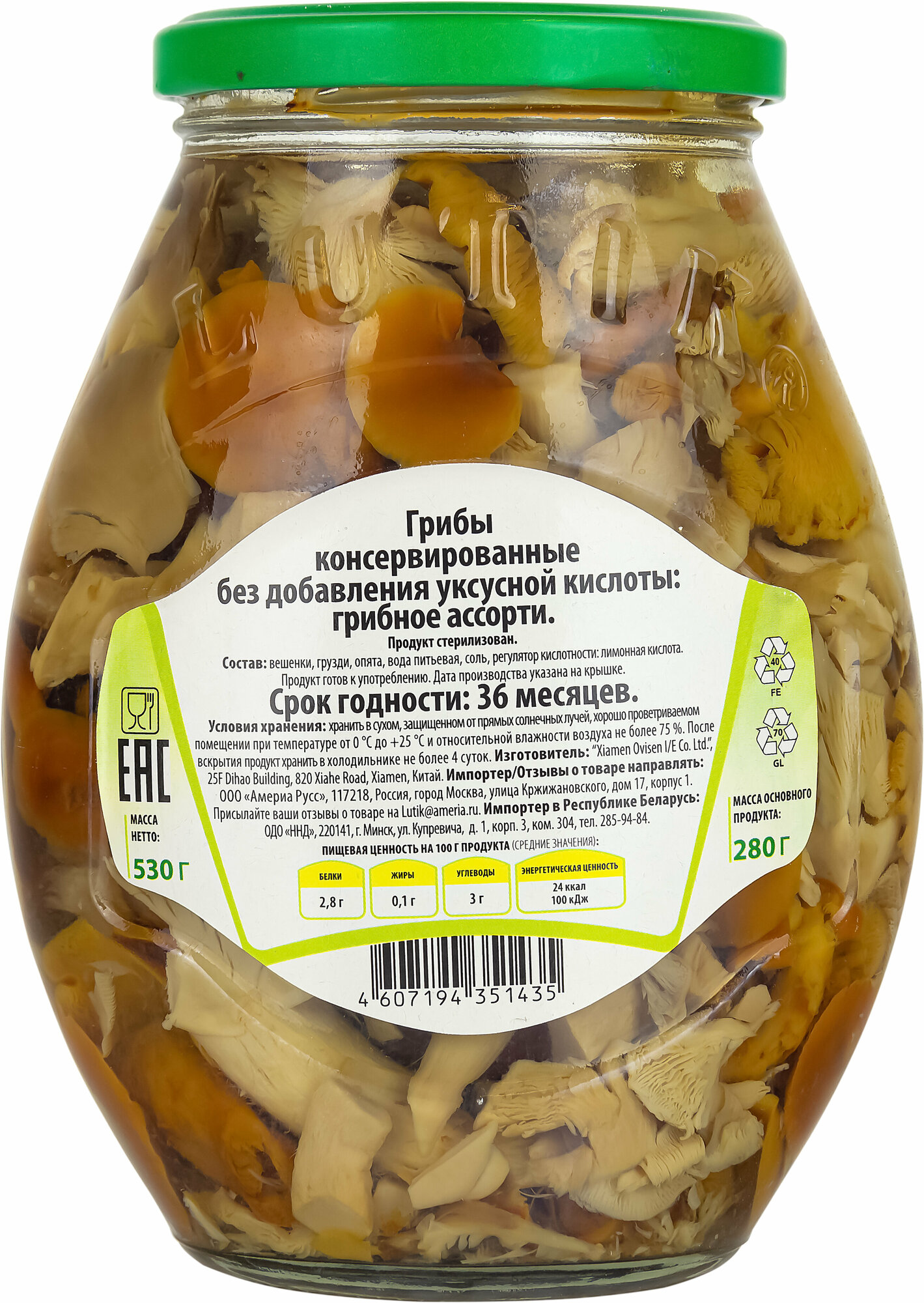 | Состав | вешенки, грузди, опята, маринад |