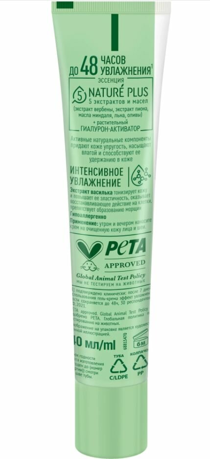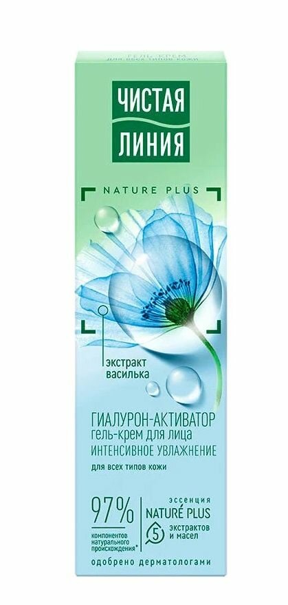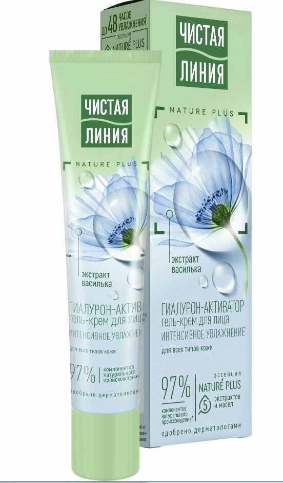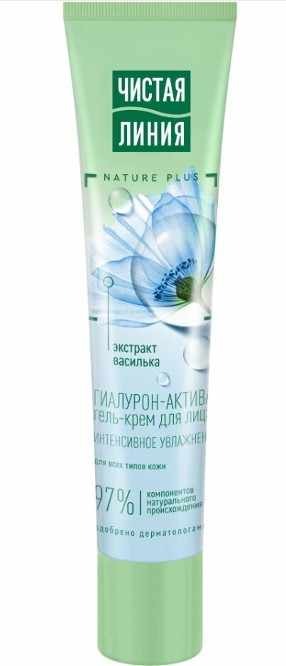 Гель-крем для лица «Чистая Линия» содержит эссенцию из пяти экстрактов и масел Nature Plus (экстракт вербены, экстракт пиона, масла миндаля, льна, оливы), а также экстракт василька и растительный гиалурон-активатор. Активные натуральные компоненты питают, восстанавливают защитный барьер кожи, наполняют влагой, способствуют ее удержанию и выравнивают микрорельеф. Экстракт вербены необходим для поддержания процессов саморегуляции кожи, обладает детокс эффектом, увлажняет и тонизирует. Экстракт пиона успокаивает и освежает цвет лица. Масло миндаля, насыщенное жирными кислотами, витаминами Е и F, питает и разглаживает поверхность кожи. Льняное масло смягчает и успокаивает. Ферментированное оливковое масло богато мощными природными антиоксидантами, необходимыми для защиты от преждевременного старения. Экстракт василька тонизирует и повышает эластичность, оказывает восстанавливающее действие на клетки, препятствует образованию морщин. Растительный гиалурон-активатор насыщает кожу влагой мгновенно и продолжительно, проникая в различные слои эпидермиса.