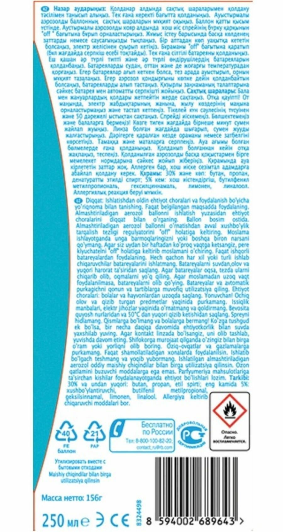 | Вид упаковки | баллон |