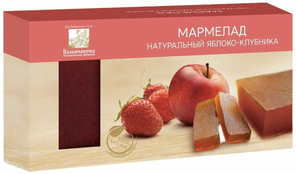 | Состав | пюре яблочное, пюре клубничное, сахар-песок, желирующий агент-пектин, регулятор кислотности - кислота лимонная |