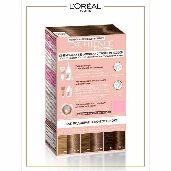 Экселанс Универсальные нюдовые оттенки это первая крем-краска без аммиака, которая на 100% закрашивает седину и обеспечивает тройной уход: уход за цветом, уход за кожей головы, уход за волосами.