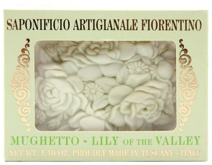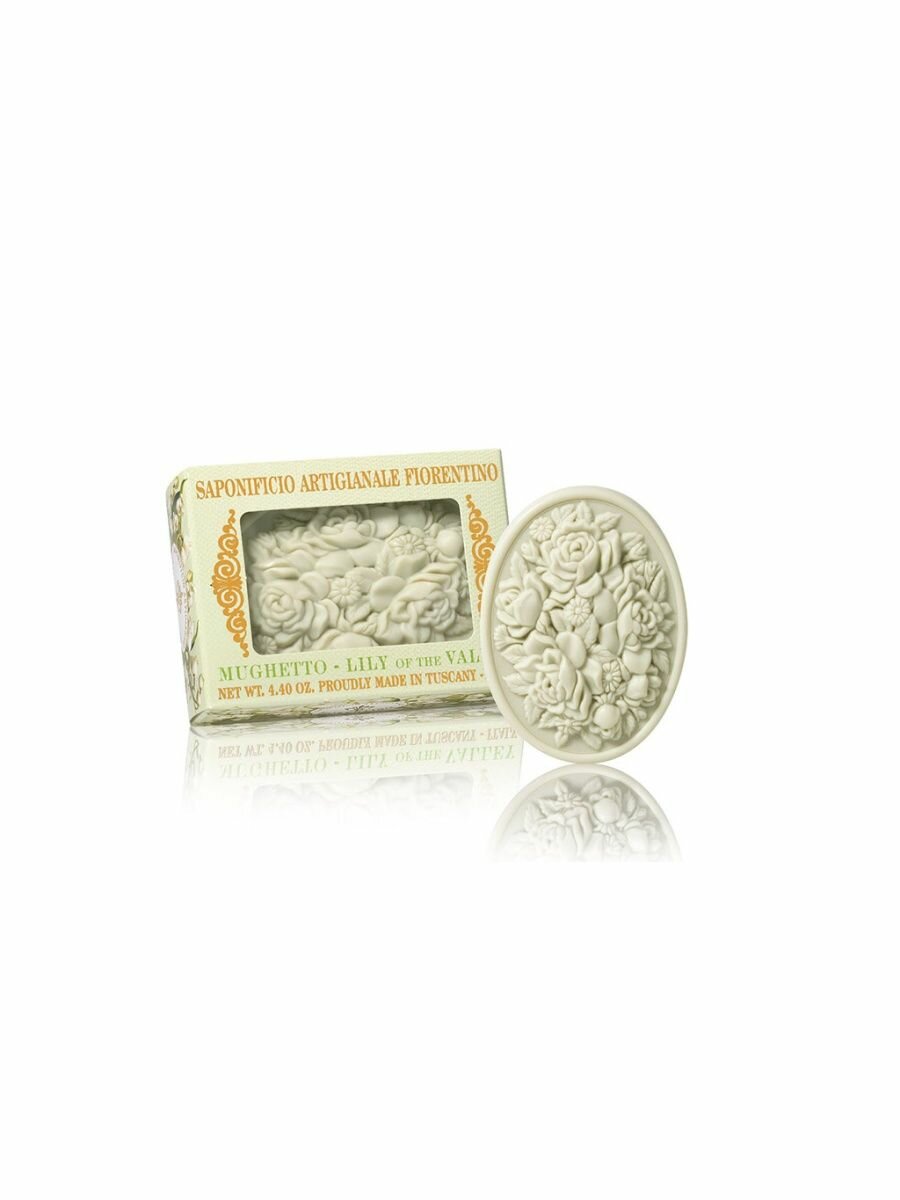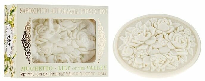 Благодаря очаровательному дизайну, а именно – изящной резьбе с изображениями утонченных цветов, натуральное мыло «Ландыш» трудно назвать просто мылом. Это бьюти-средство похожее на настоящее произведение искусства. Прекрасный внешний вид делает его замечательным дополнением к подарку, а невероятно притягательный аромат – любимым средством для ухода за кожей. Несомненно, пользоваться им – одно удовольствие! Убедитесь в этом сами, воспользовавшись хоть раз ароматным натуральным мылом «Ландыш», который представили лучшие мастера известного итальянского бренда Saponificio Artigianale Fiorentino.Мыло натуральное "Ландыш" Saponificio Artigianale Fiorentino Botticelli Lily Of The Valley Soap обеспечивает крайне легкое и бережное очищение кожного покрова от всех загрязнений и патогенных микроорганизмов. Благодаря натуральным компонентам и увлажняющему эффекту мыло не вызывает ощущение сухости и стянутости после использования. Ваша кожа будет гладкой, мягкой и увлажненной. Мыло замечательно подходит для всех типов кожи. Оно также не вызывает раздражений или сухости, аллергических реакций у обладателей гиперчувствительного кожного покрова.