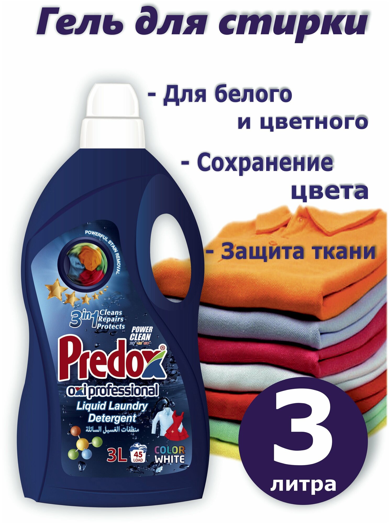 Гель для стирки Predox Blue для цветного и белого белья 3 л, 45 стирок. Может использоваться для всех видов тканей, кроме шерсти и шелка.⠀В отличии от порошка, жидкое средство для стирки имеет деликатное, щадящее моющее действие. Сохраняет форму вещей и структуру ткани, подходит для ежедневного использования, а также обеспечивает эффект восстановления ткани и способствует сохранению прочности. Быстро растворяется и полностью выполаскивается, не оставляя разводов на белье, что снижает риск аллергических реакций на коже до минимума. Жидкий стиральный порошок Predox Blue легко дозировать при помощи колпачка, выполняющего роль мерного стаканчика. Вся информация о правильной дозировке средства указана на обратной стороне упаковки.⠀Густая, концентрированная структура геля делает его экономичным в использовании. Упаковки средства достаточно для 45 стирок. Жидкое средство для стирки Predox Blue справляется с любыми видами пятен от еды и напитков, следов детского творчества и любой уличной грязи. Линия средств для стирки Predox обеспечивает бережный уход одежде любых расцветок и различных видов тканей, используйте также Кондиционер для белья Predox, который придаст мягкость и нежный аромат вашему белью. Средство Predox помогает сохранить аккуратный и новый вид любимых вещей.