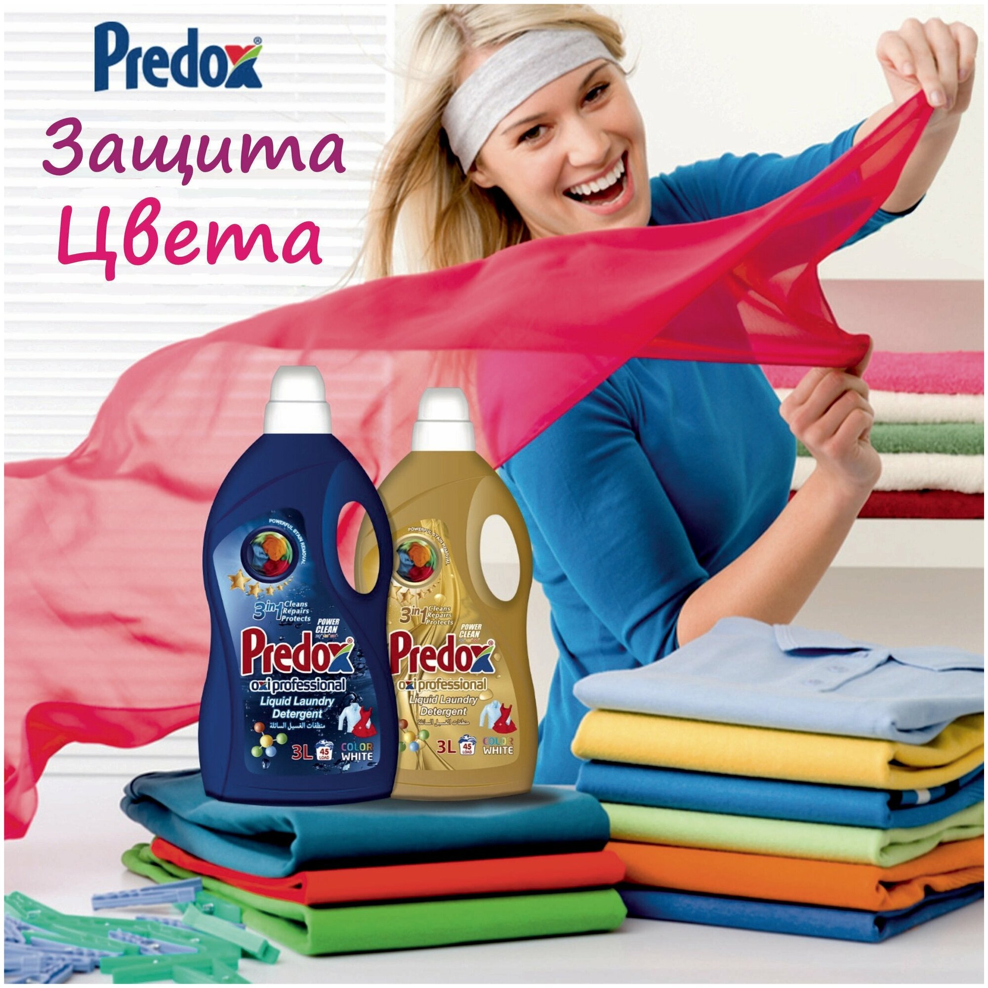 Гель для стирки Predox для белого и цветного белья, бережно и эффективно удаляет загрязнения с одежды. Сохраняет цвета яркими и насыщенными. Предотвращает потерю интенсивности цвета ткани. Полностью выполаскивается.